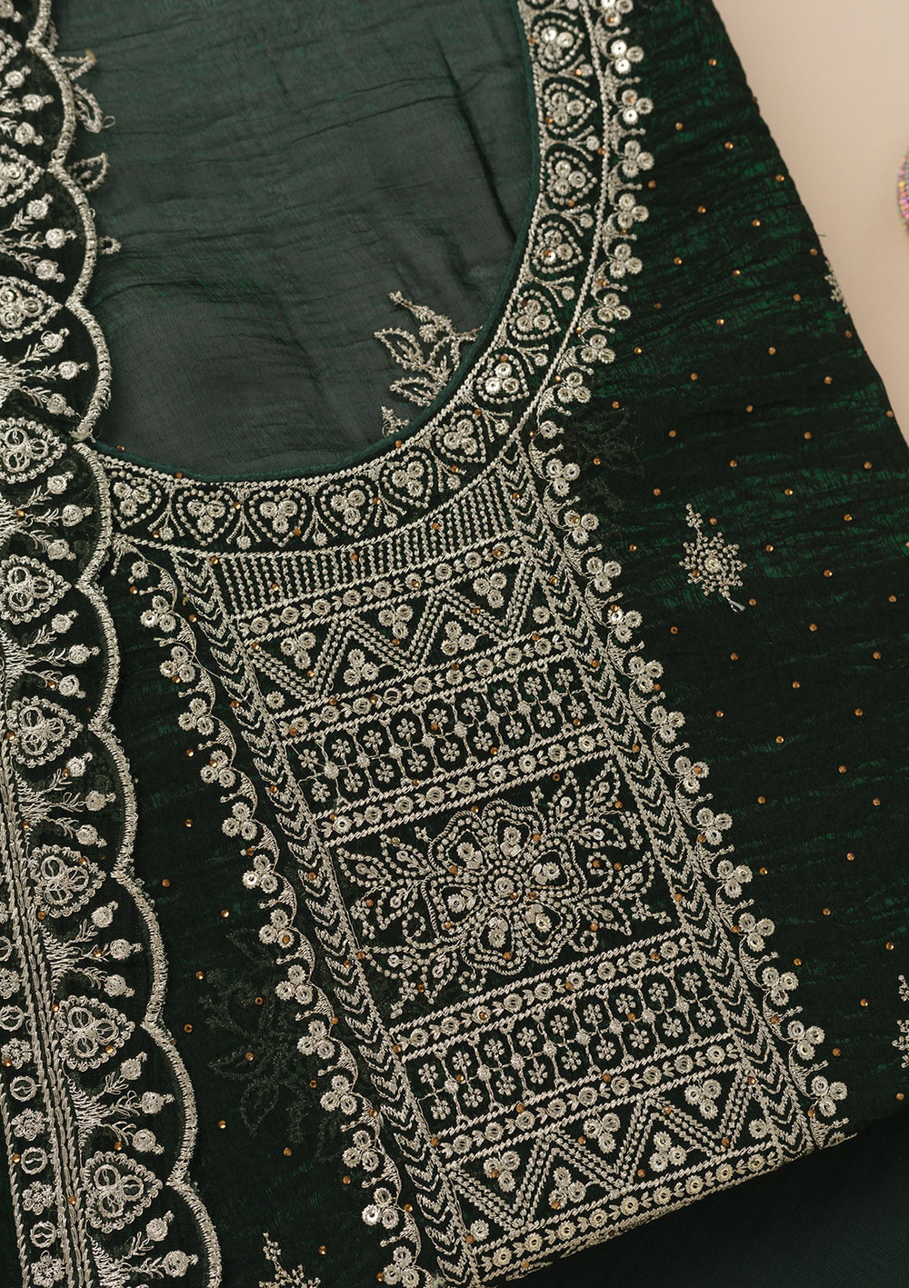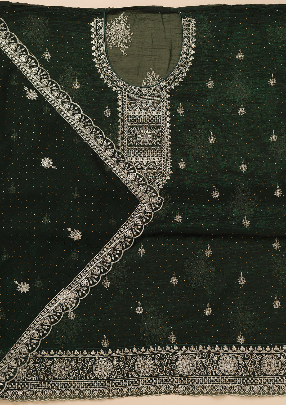 Bottle Green Zariwork Art Silk Unstitched Salwar Suit