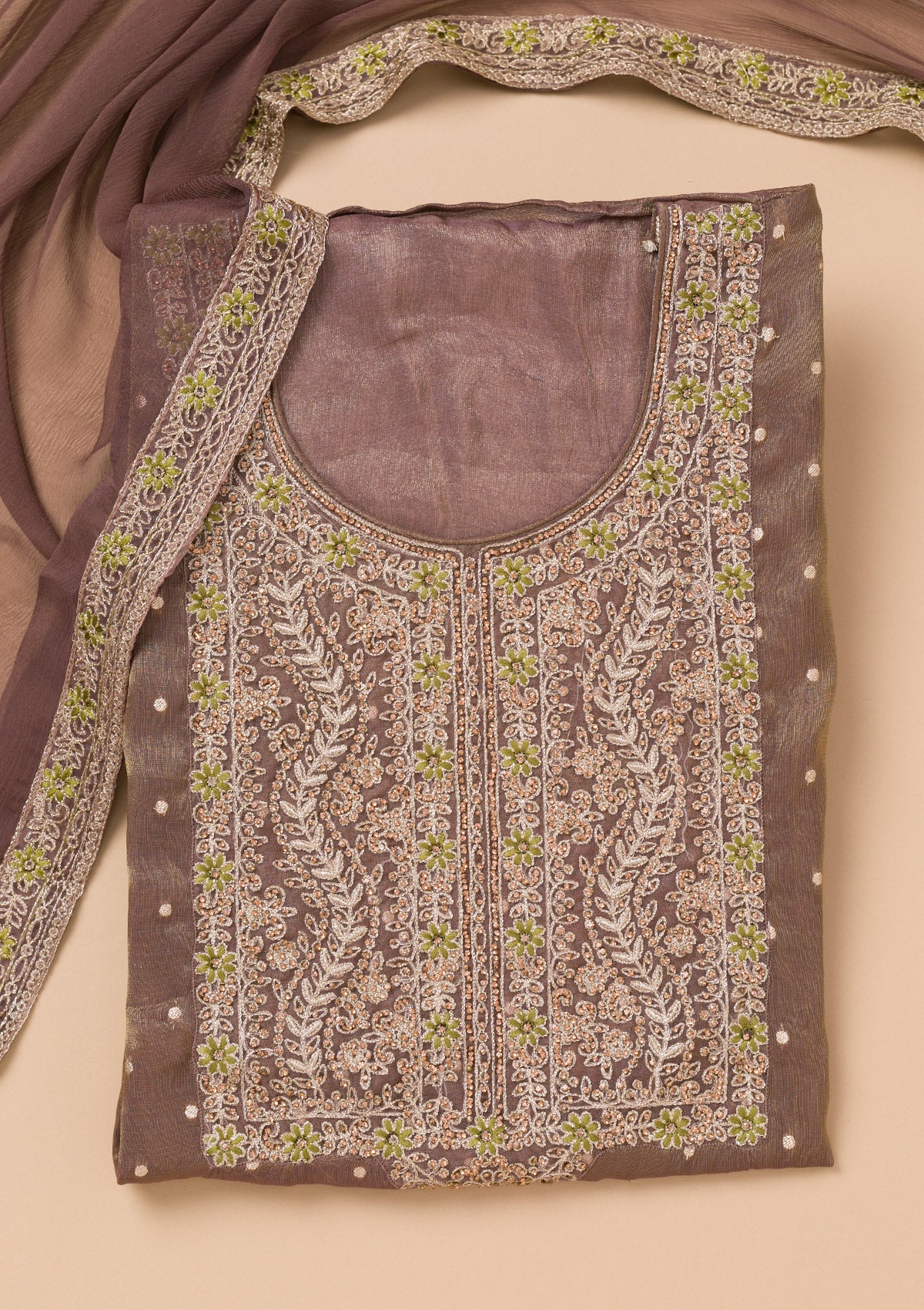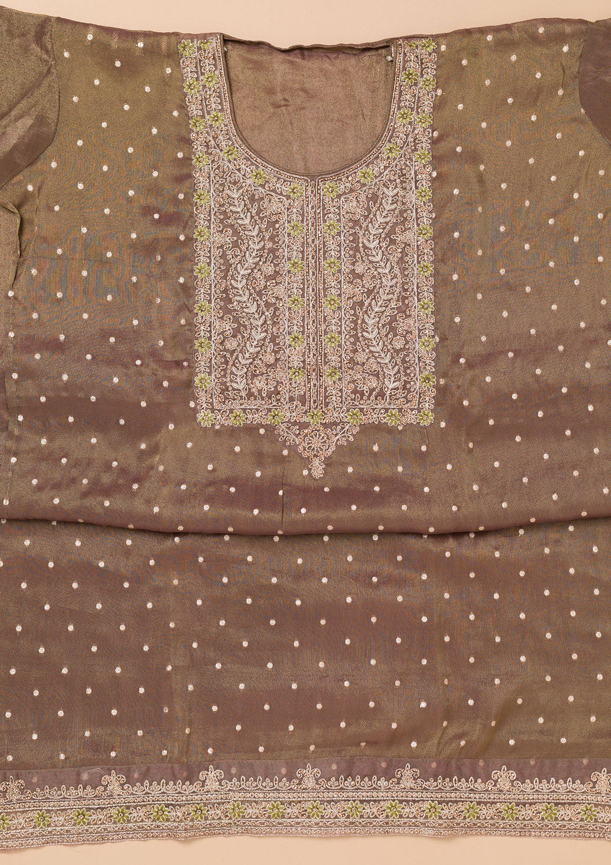 Brown Threadwork Organza Unstitched Salwar Suit