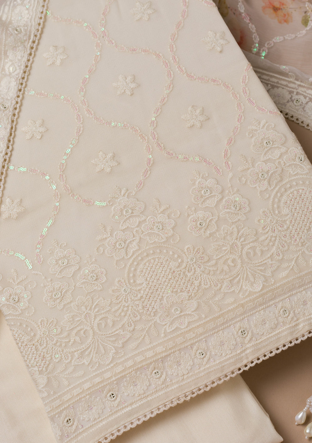 Cream Threadwork Georgette Unstitched Salwar Suit
