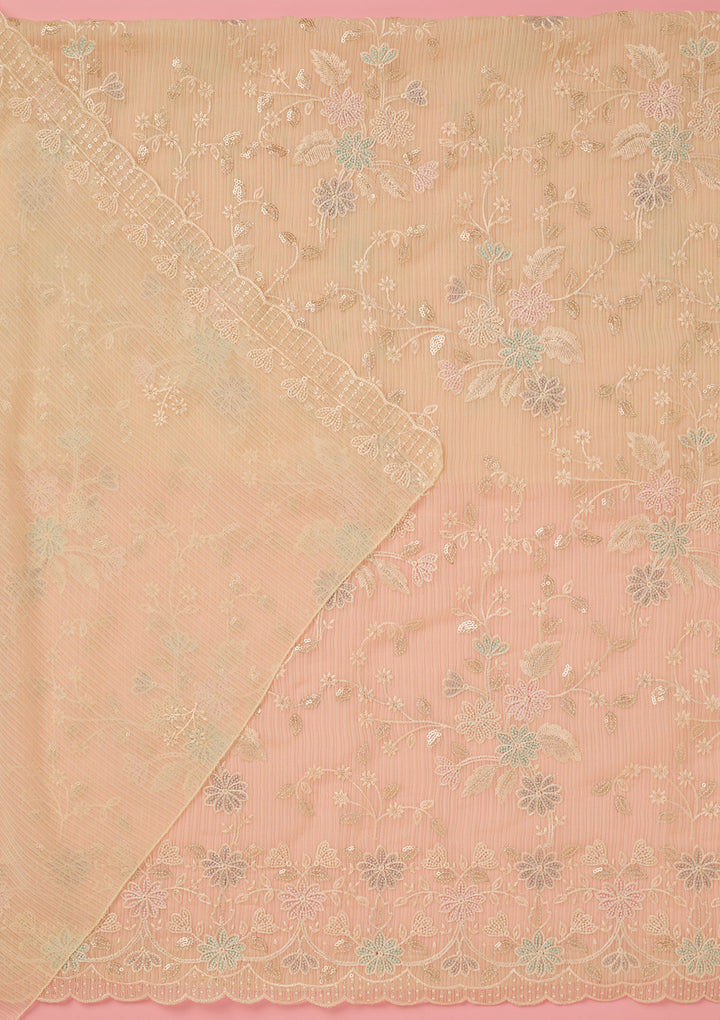 Cream Threadwork Semi Crepe Unstitched Salwar Suit