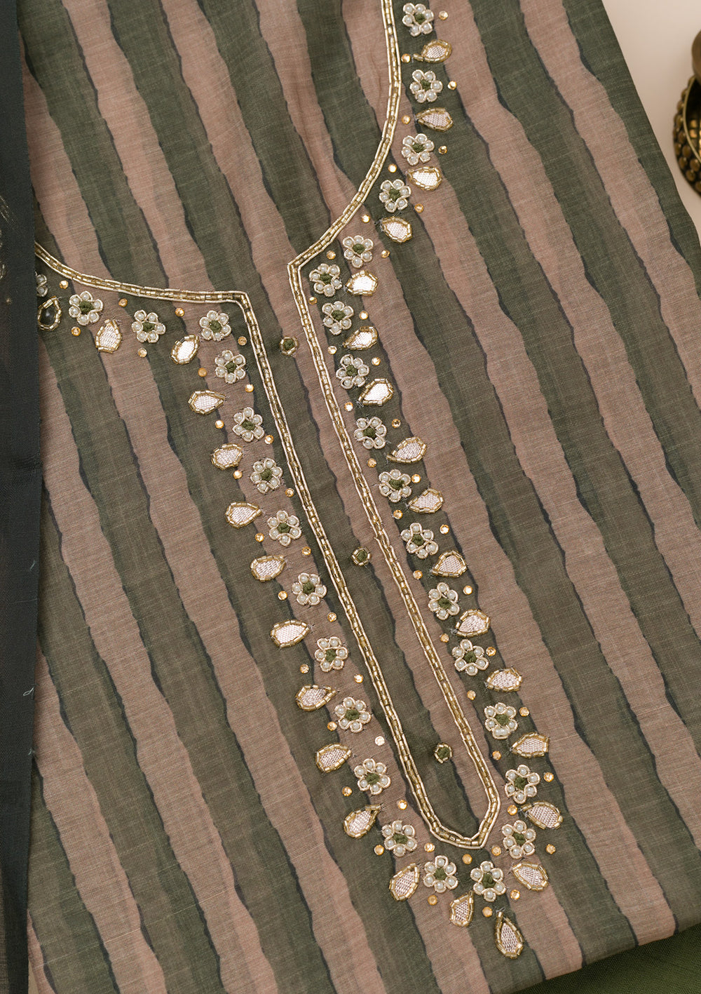 Unleash your creative spirit with Koskii’s exclusive green tissue salwar suit, designed for the woman who adorns herself in mystery and elegance. This unstitched marvel flaunts exquisite stonework that dances playfully across a fabric as light and shimmering as the morning dew. Get ready to weave your own magic into this ensemble, embodying timeless beauty with every stitch!.