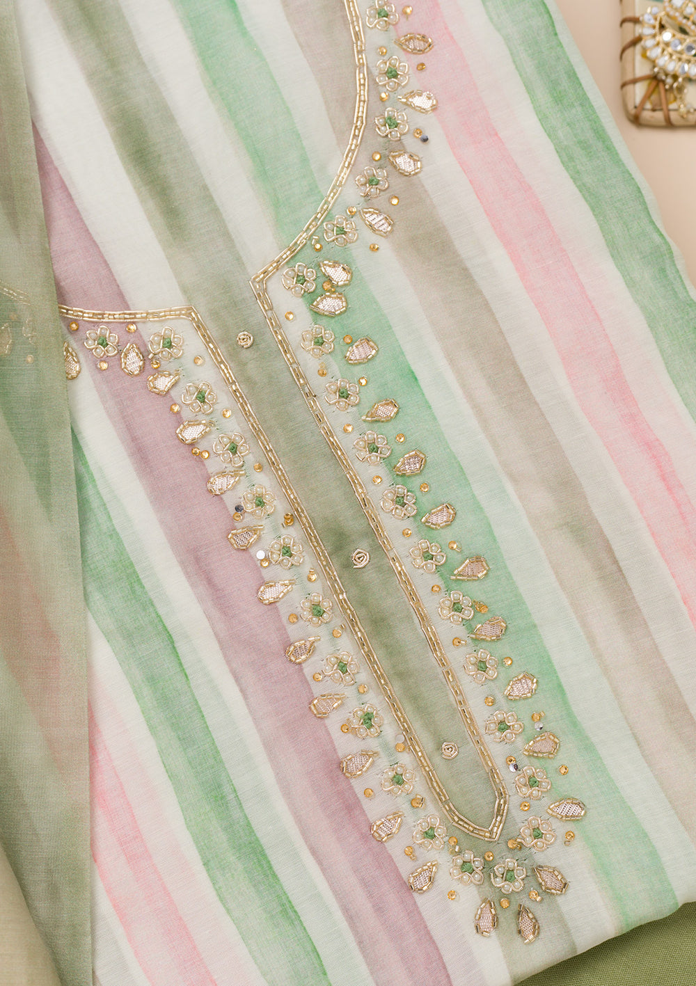 Green Salwar Suit in Tissue fabric. The Salwar Suit is embellished with Printed embroidery. Accompanied with a bottom and dupatta. Comes with the Koskii promise of premium quality.