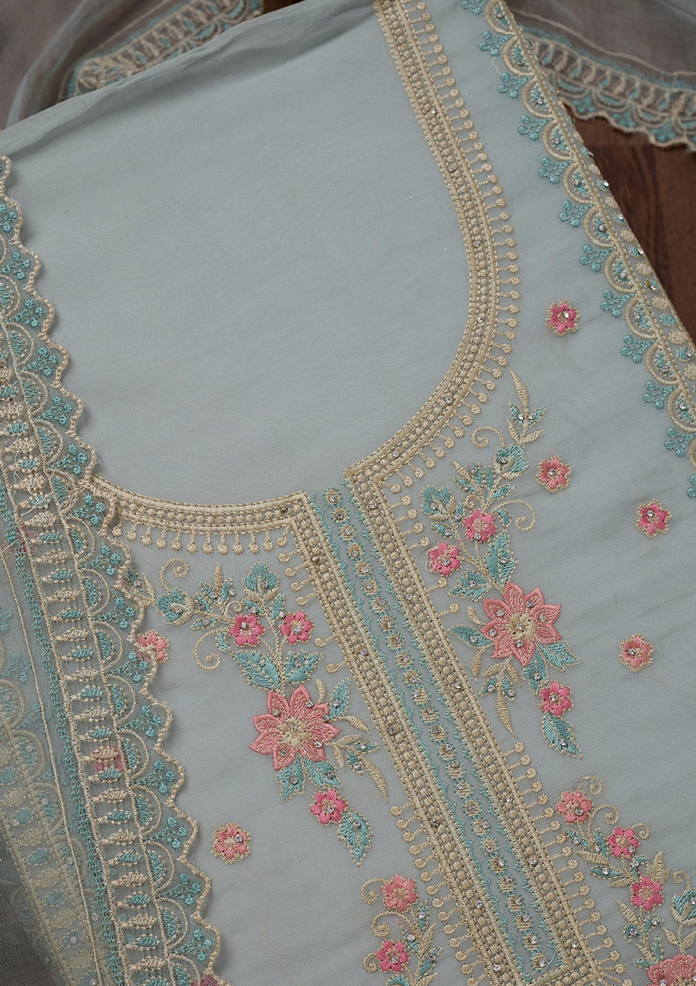 Grey Threadwork Georgette Unstitched Salwar Suit