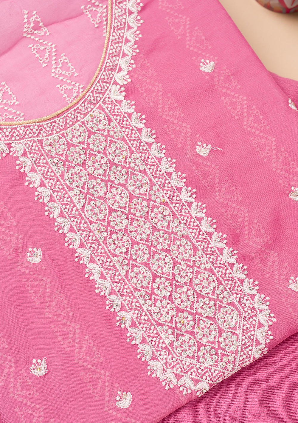 Pink Threadwork Georgette Unstitched Salwar Suit