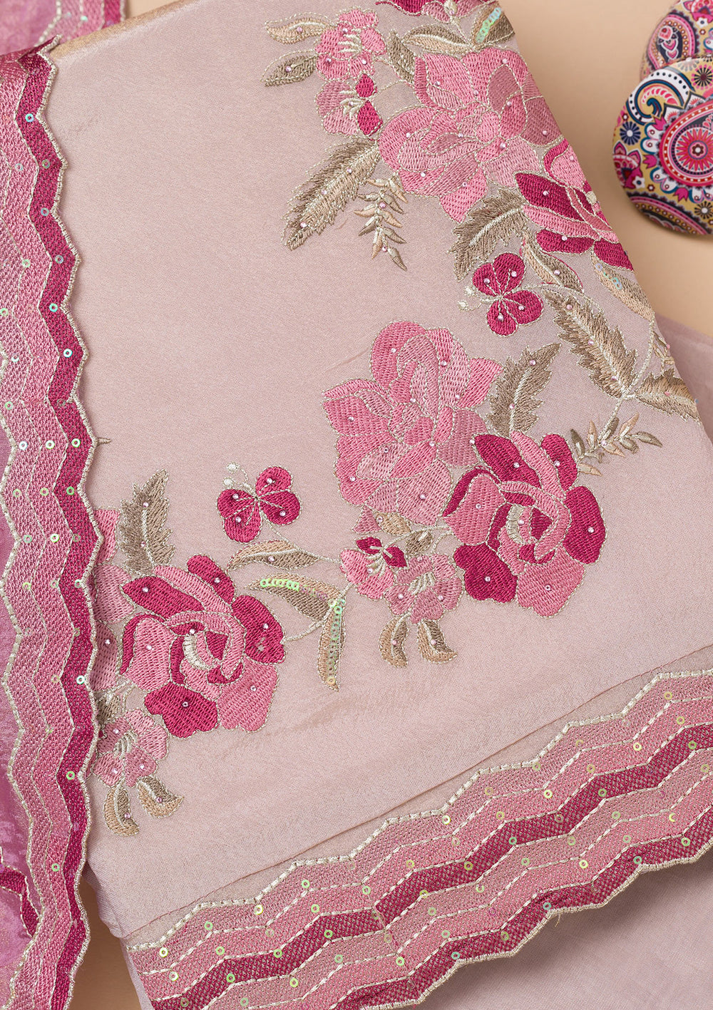 Lavender Threadwork Semi Crepe Unstitched Salwar Suit