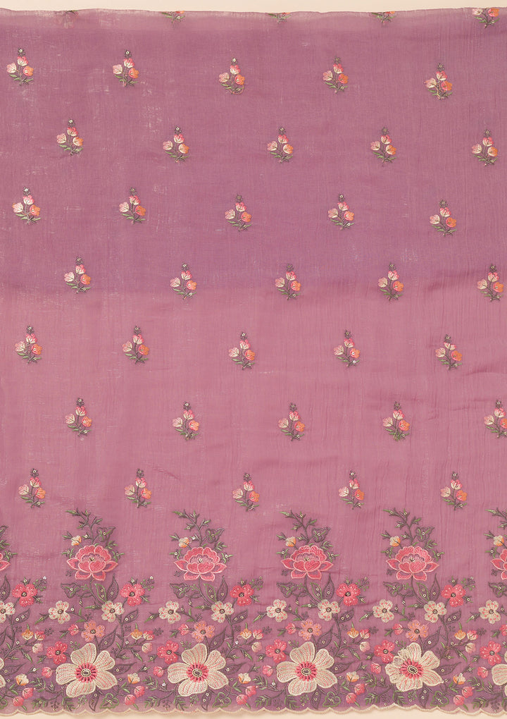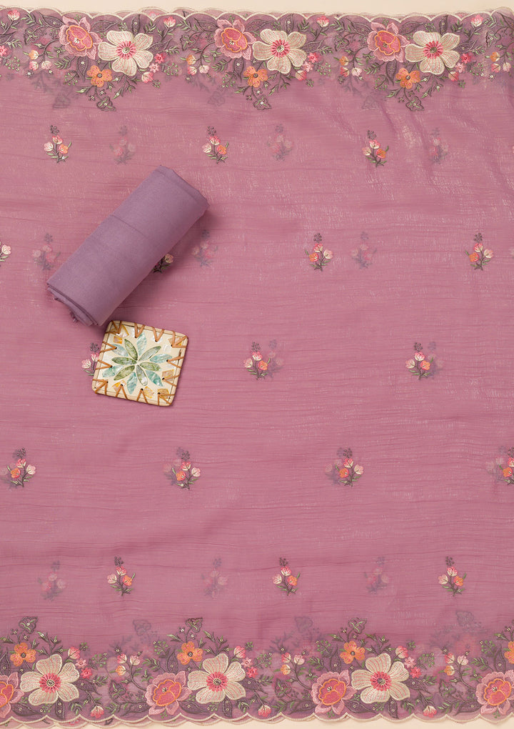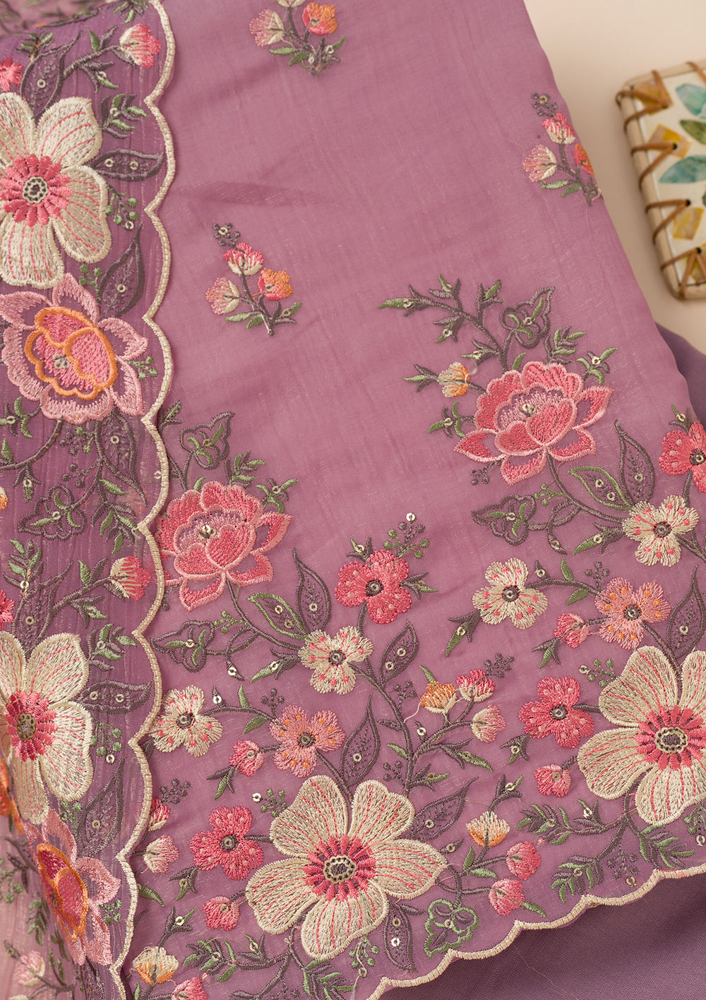 Lavender Threadwork Tissue Unstitched Salwar Suit