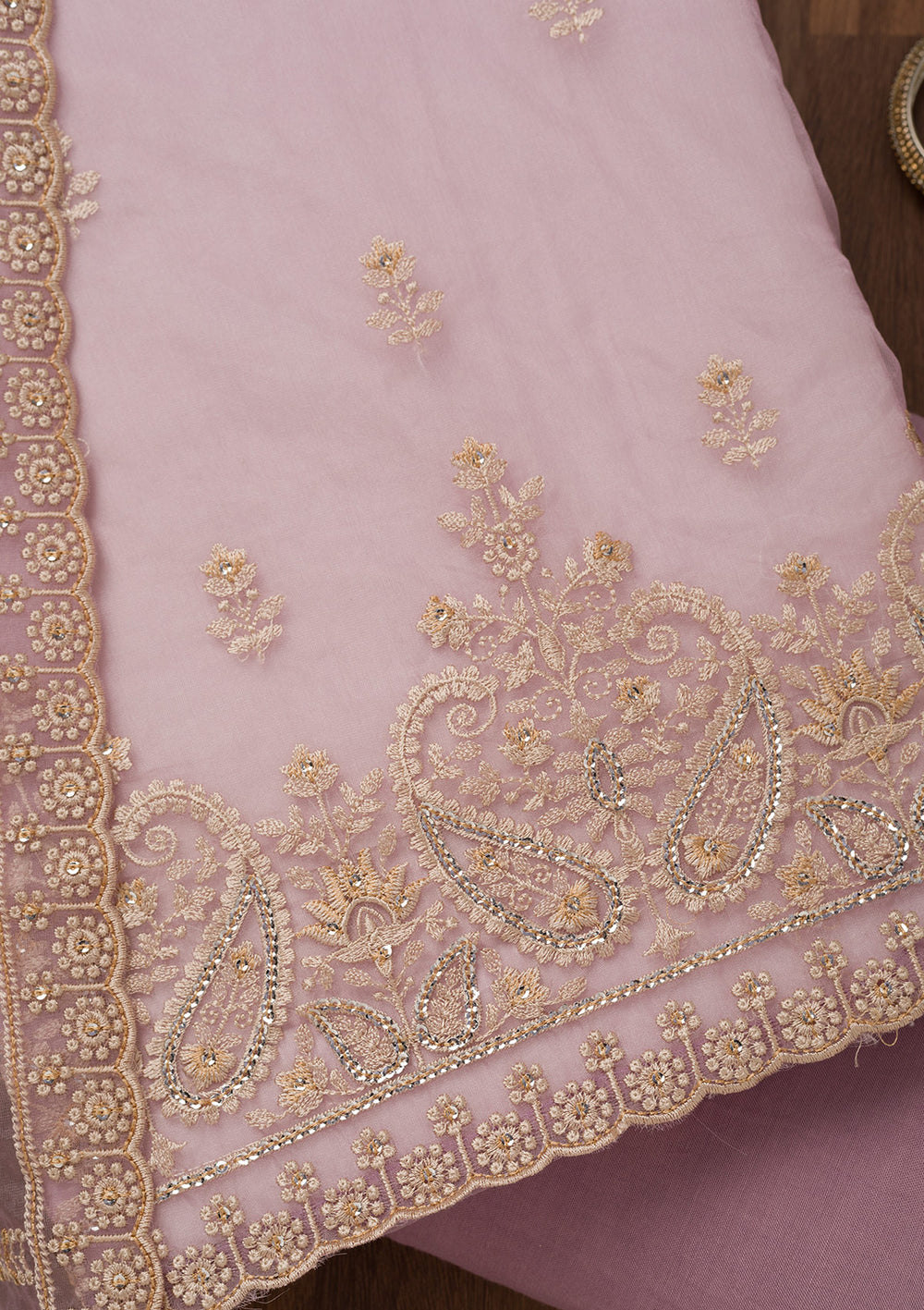 Lavender Threadwork Tissue Unstitched Salwar Suit