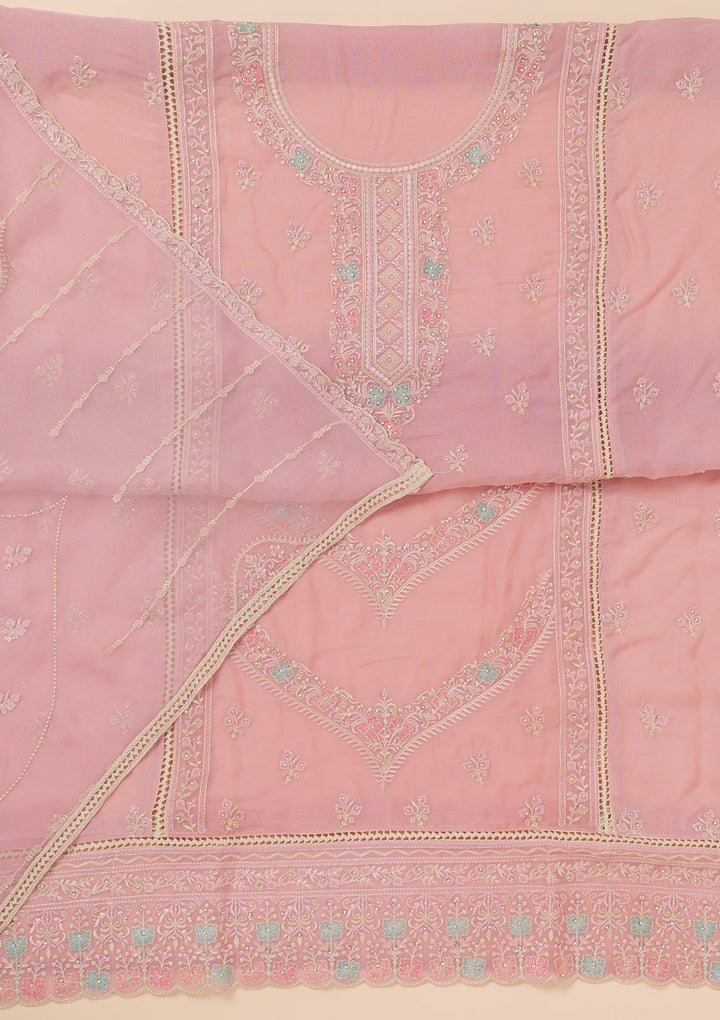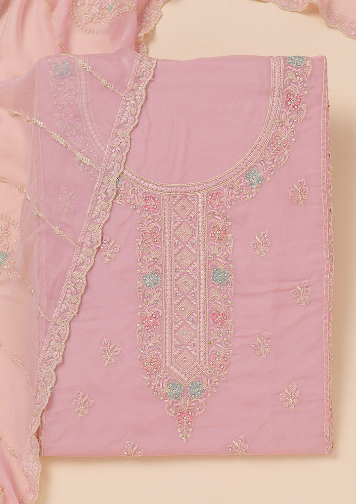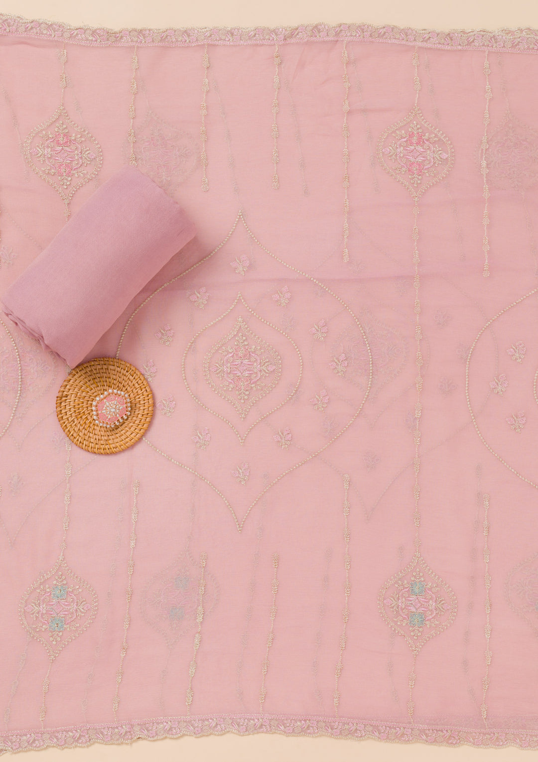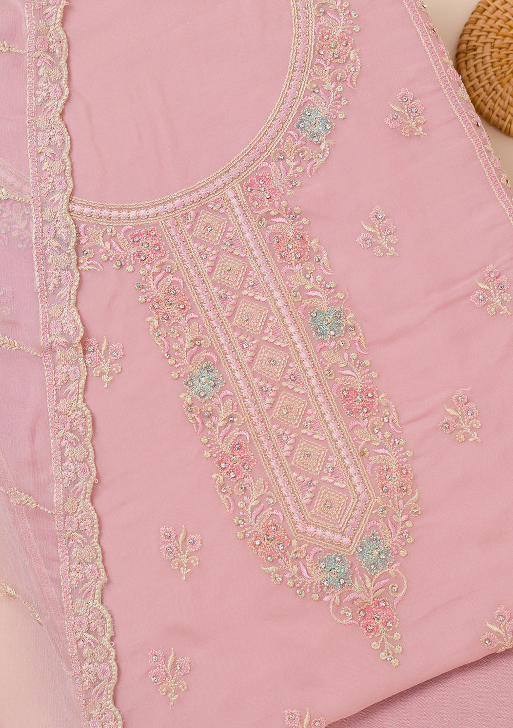 Lavender Zariwork Georgette Unstitched Salwar Suit