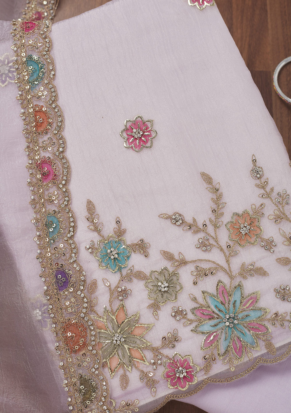 Lavender Zariwork Semi Crepe Unstitched Salwar Suit