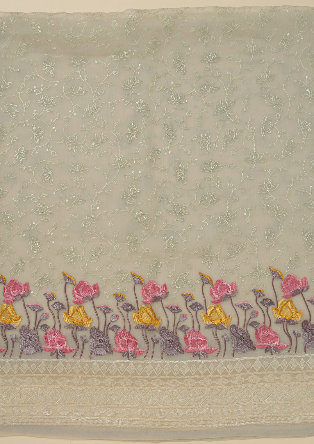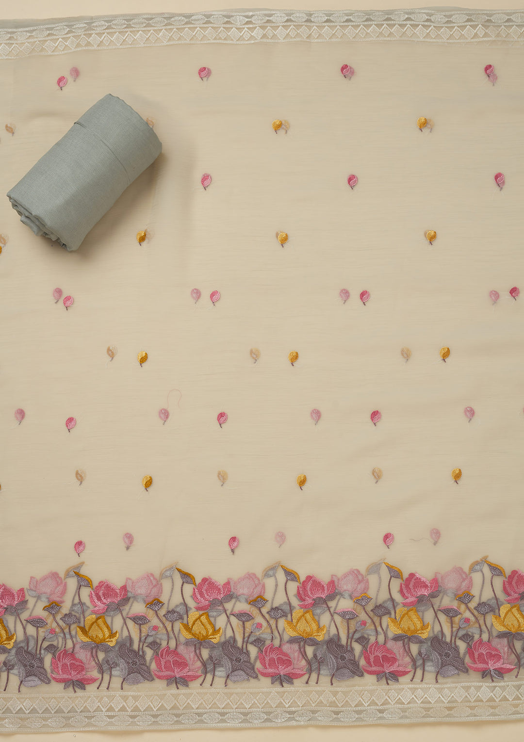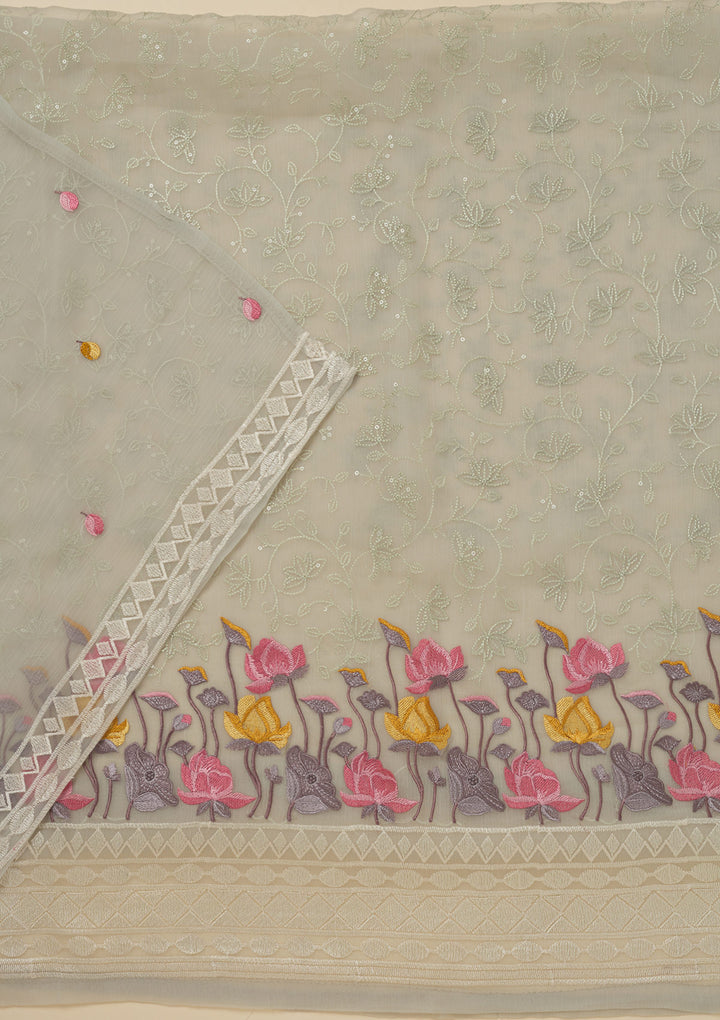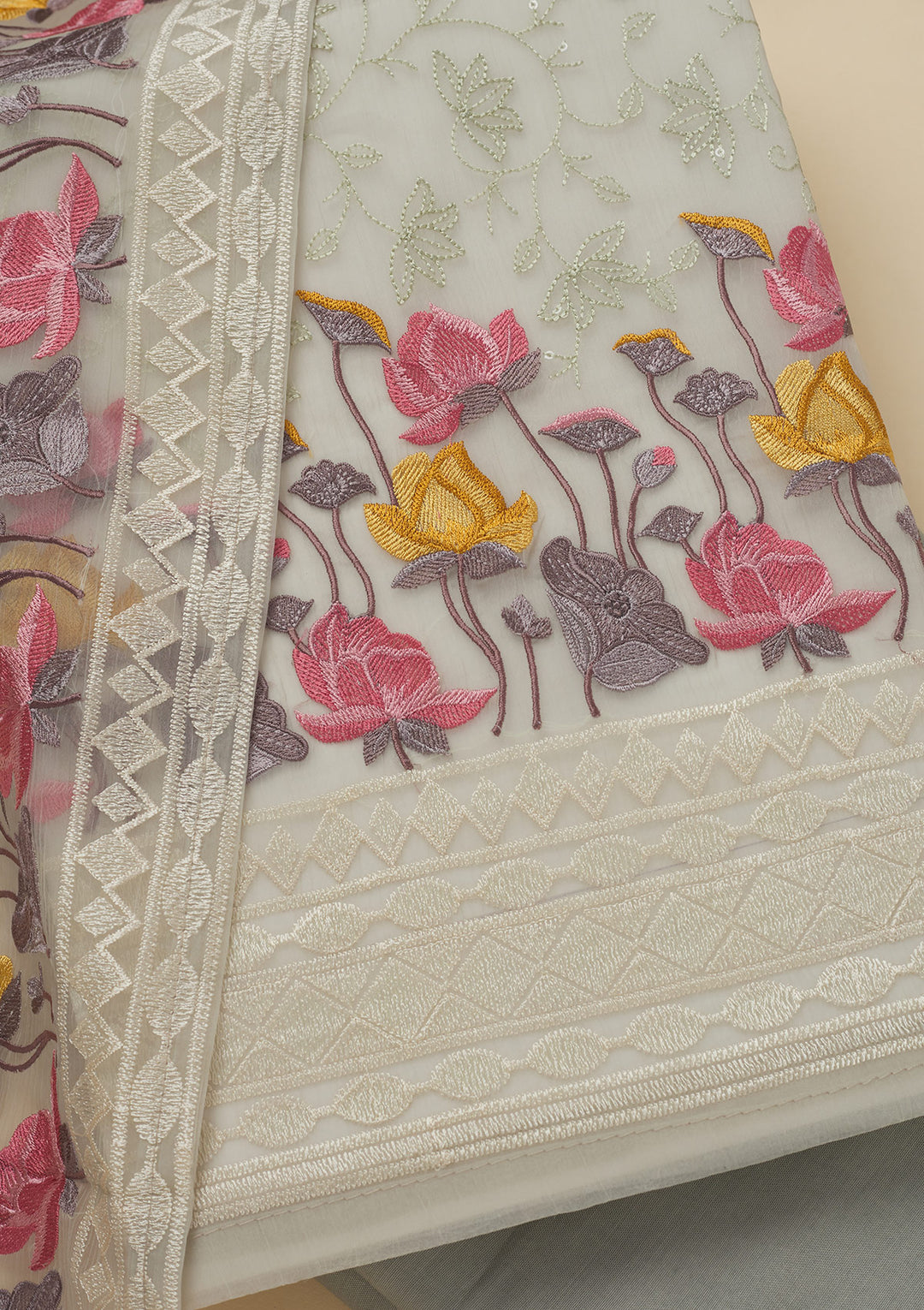 Light Grey Threadwork Organza Unstitched Salwar Suit