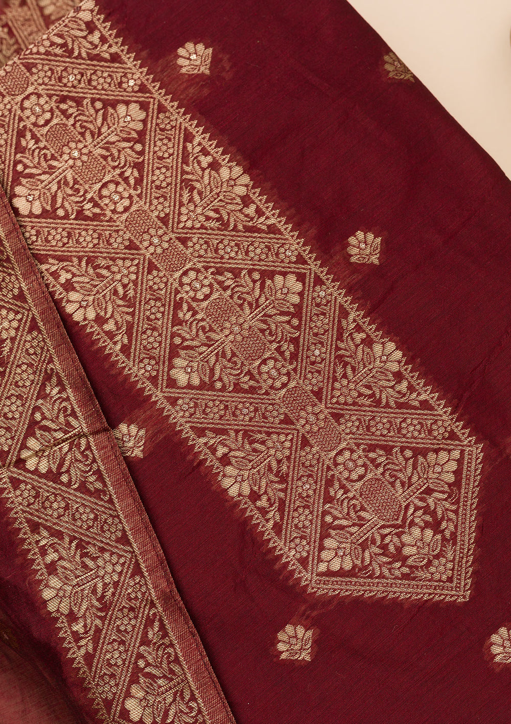 Maroon Zariwork Soft Silk Unstitched Salwar Suit