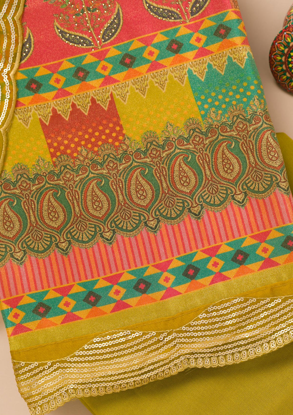 Mehendi Printed Tissue Unstitched Salwar Suit