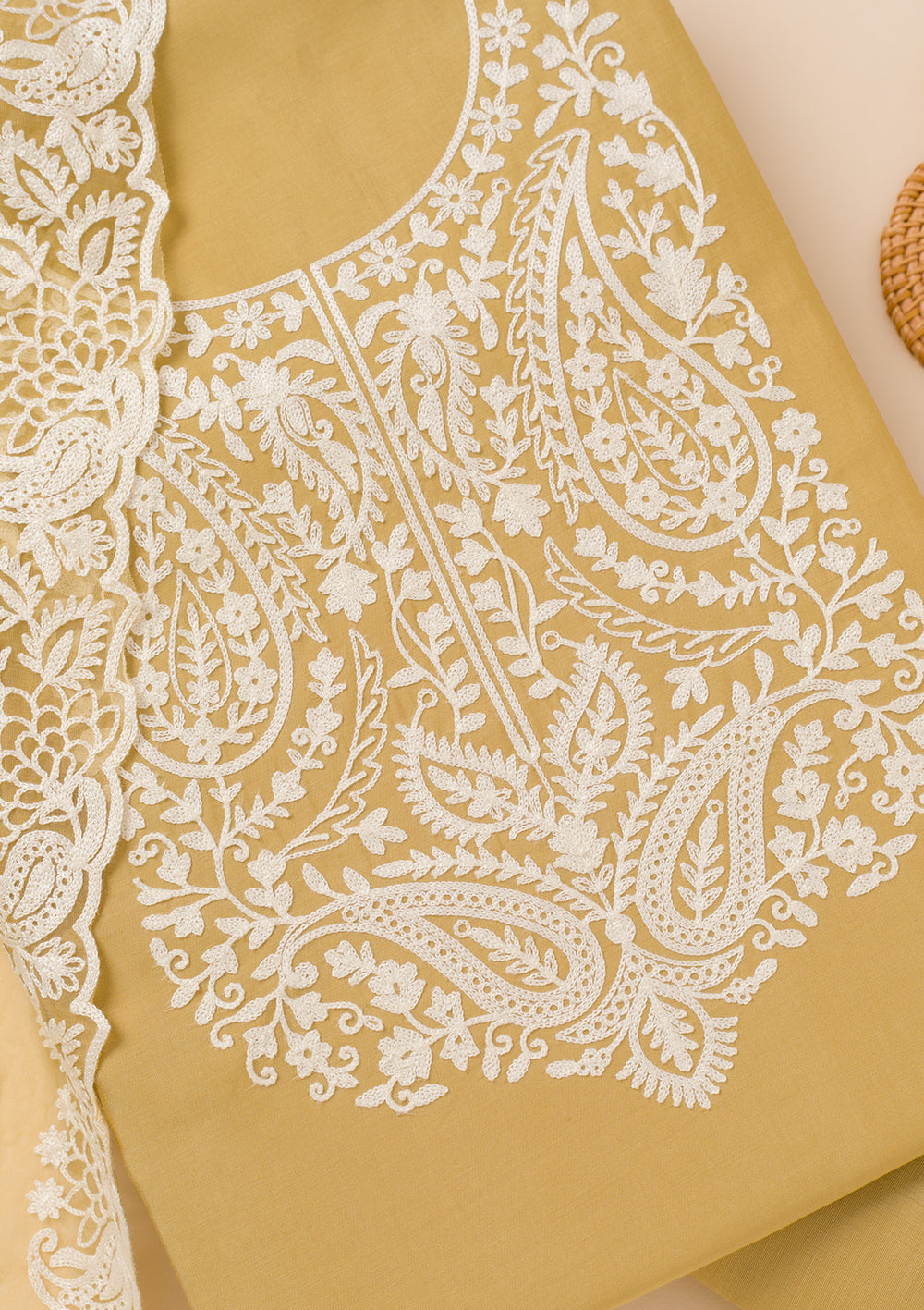 Mehendi Threadwork Semi Crepe Unstitched Salwar Suit