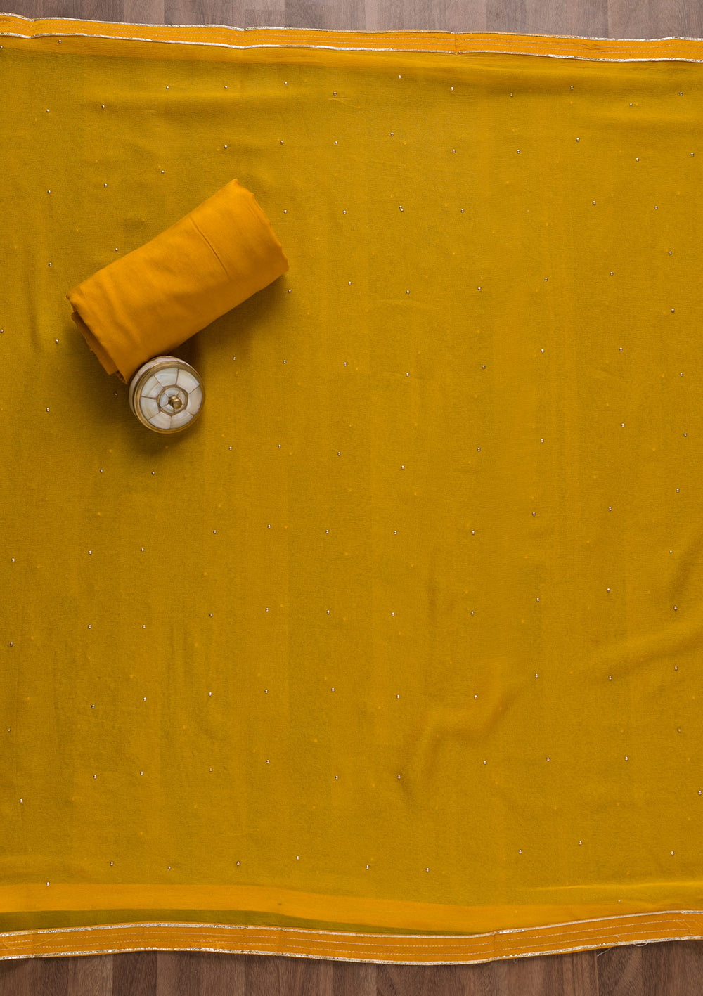 Mustard Stonework Tissue Unstitched Salwar Suit