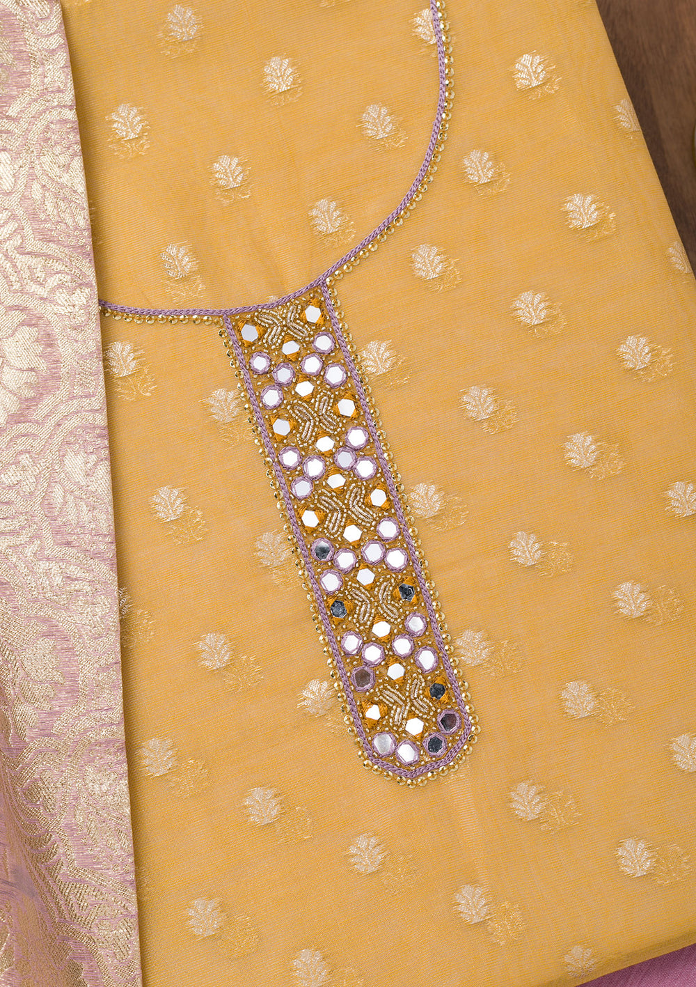 Mustard Zariwork Banarasi Unstitched Salwar Suit