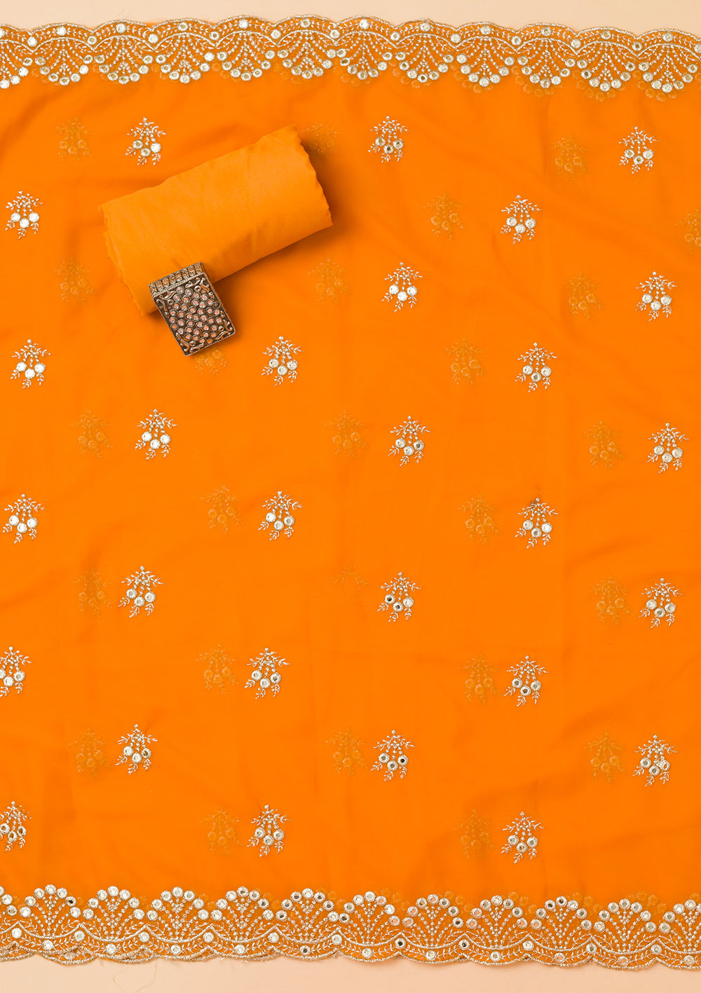 Mustard Salwar Suit in Georgette fabric. The Salwar Suit is embellished with Zariwork embroidery. Accompanied with a bottom and dupatta. Comes with the Koskii promise of premium quality.