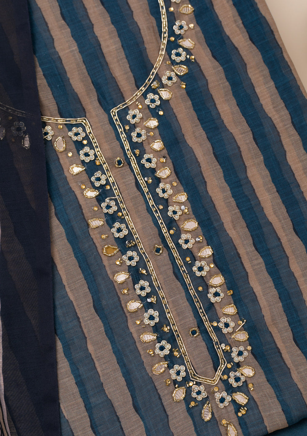 Navy Blue Printed Tissue Unstitched Salwar Suit