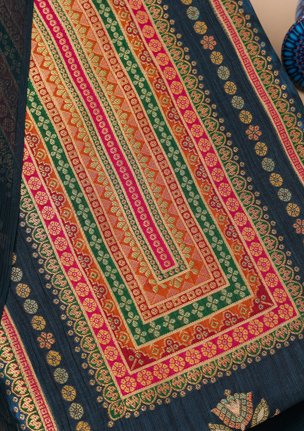 Navy Blue Zariwork Semi Crepe Unstitched Salwar Suit