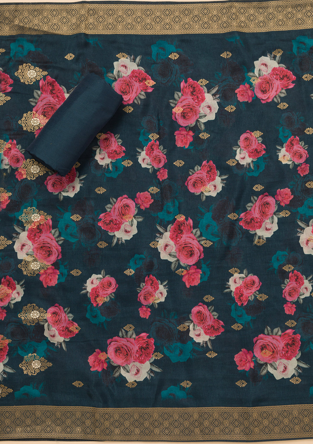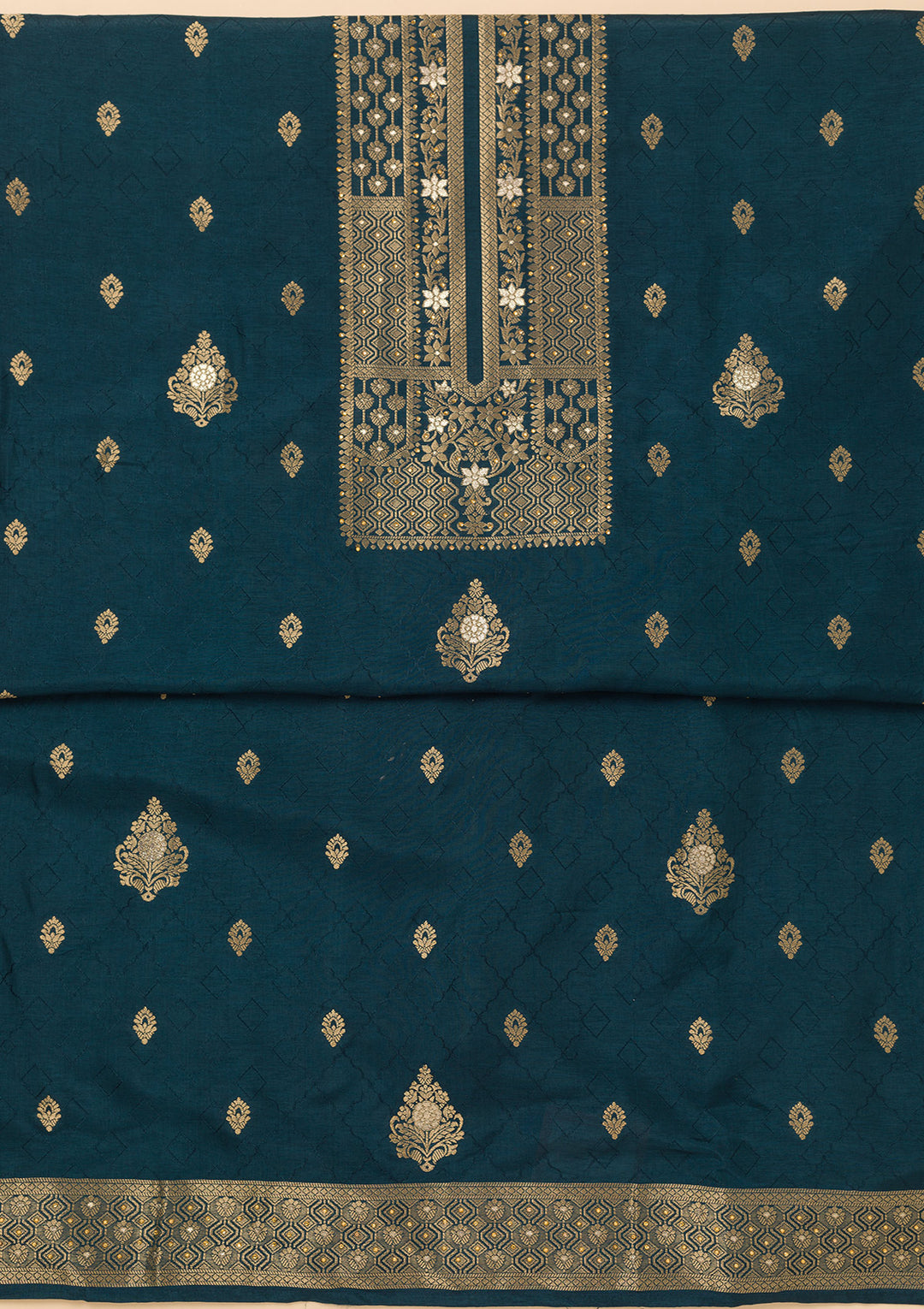 Navy Blue Zariwork Semi Crepe Unstitched Salwar Suit