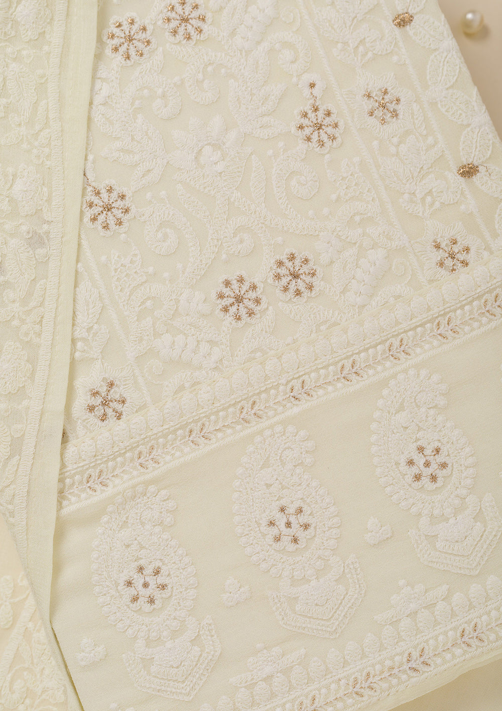 Off White Threadwork Georgette Unstitched Salwar Suit