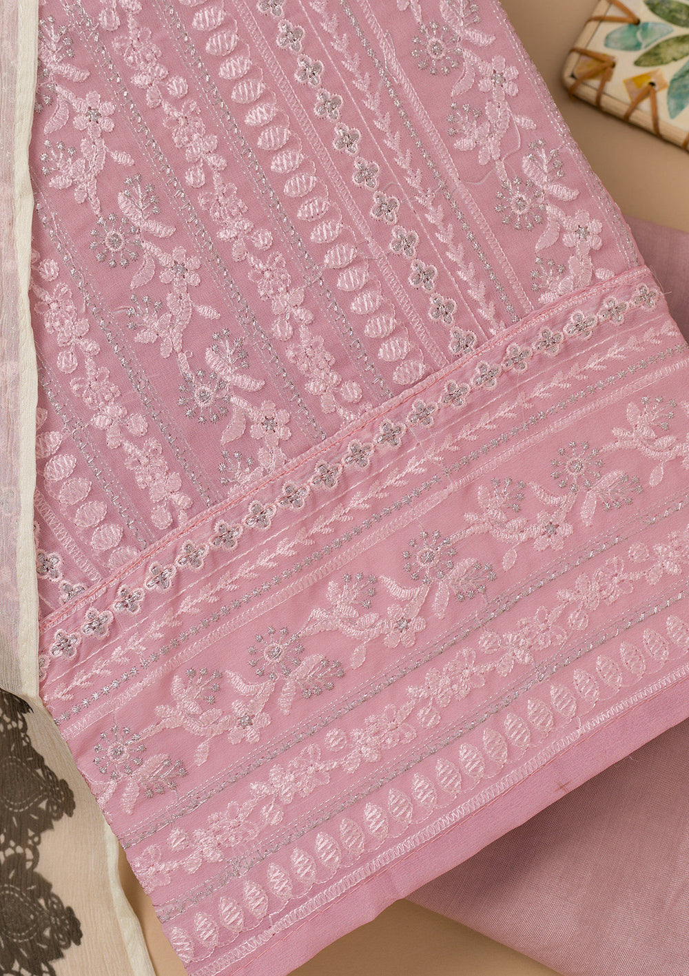 Onion Pink Threadwork Georgette Unstitched Salwar Suit