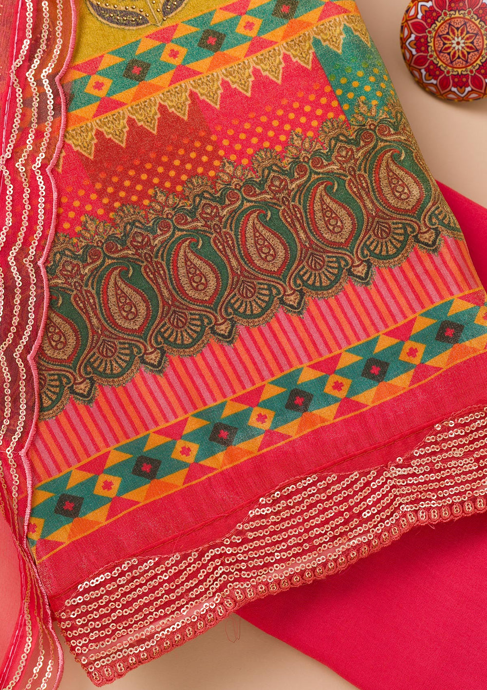 Peach Salwar Suit in Tissue fabric. The Salwar Suit is embellished with Printed embroidery. Accompanied with a bottom and dupatta. Comes with the Koskii promise of premium quality.