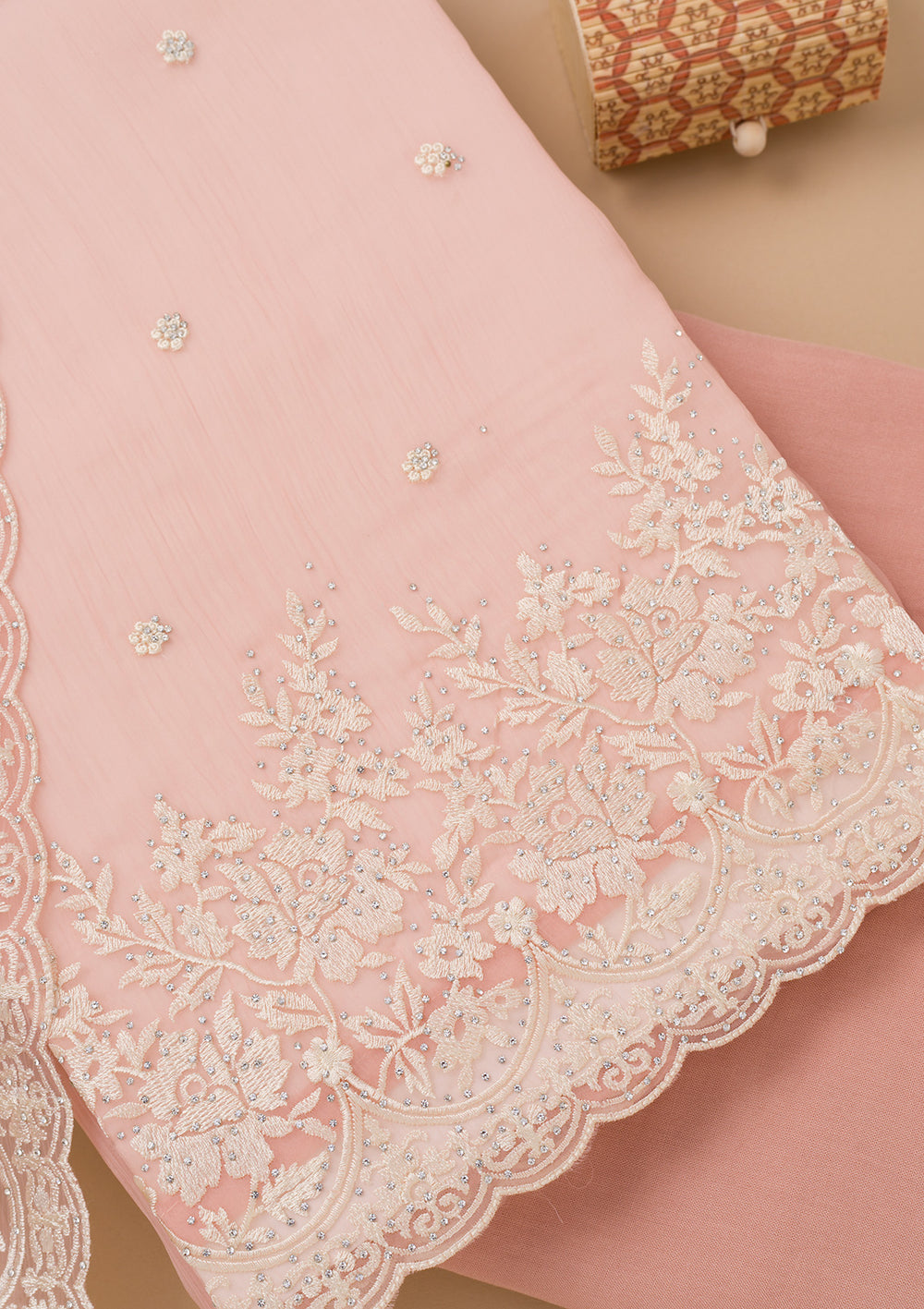 Peach Threadwork Chiffon Unstitched Salwar Suit