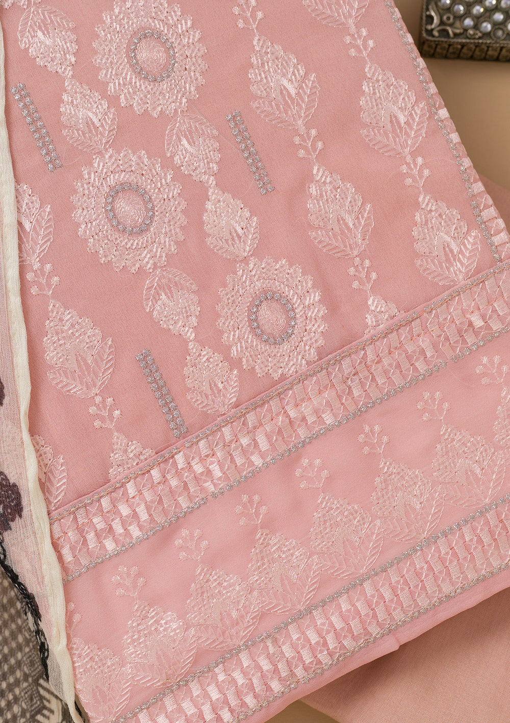 Peach Threadwork Georgette Unstitched Salwar Suit