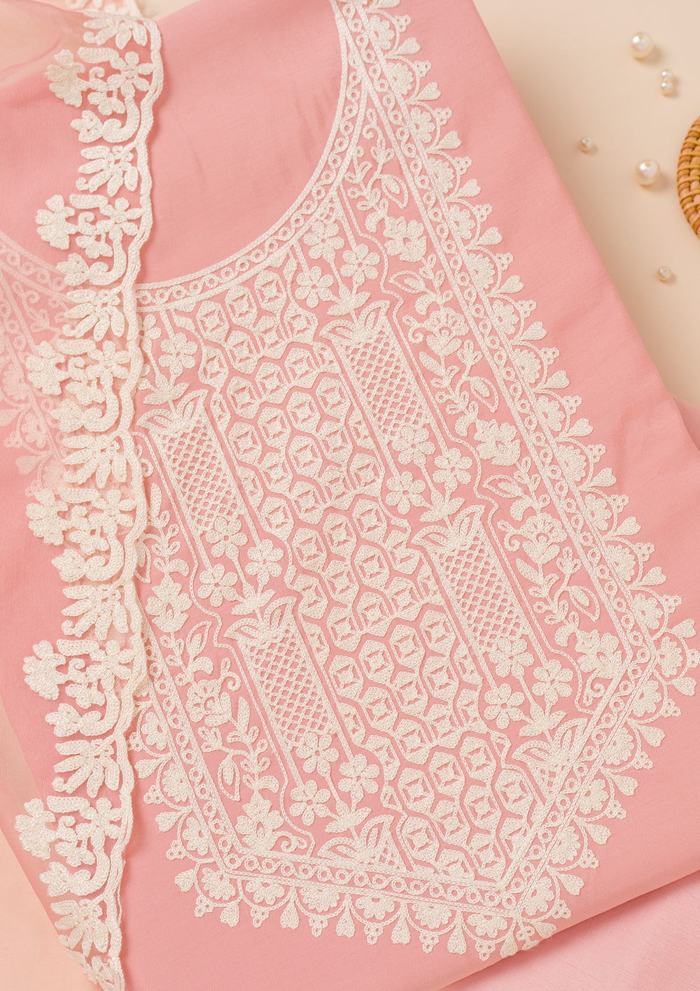 Peach Threadwork Semi Crepe Unstitched Salwar Suit