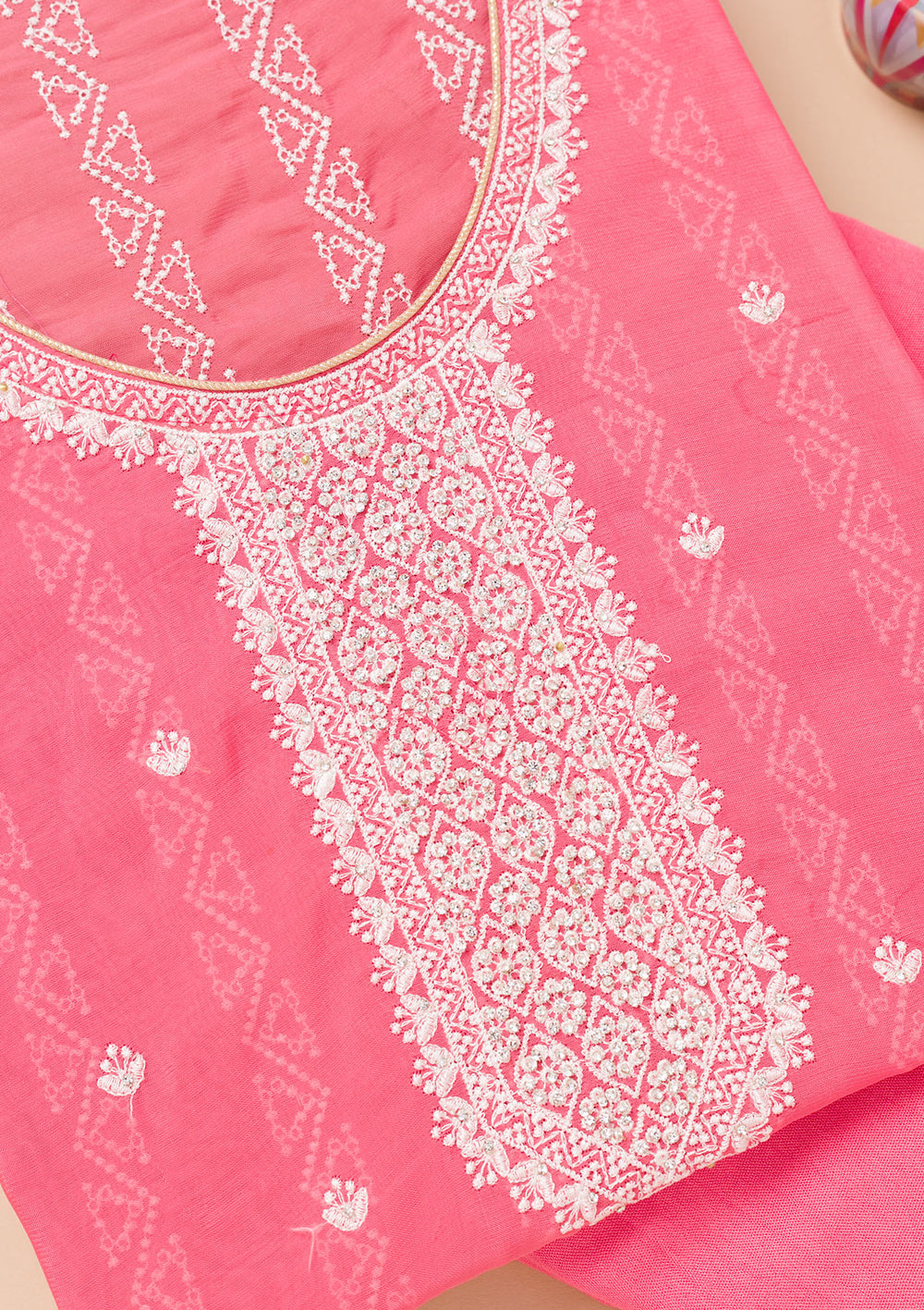 Peach Threadwork Georgette Unstitched Salwar Suit