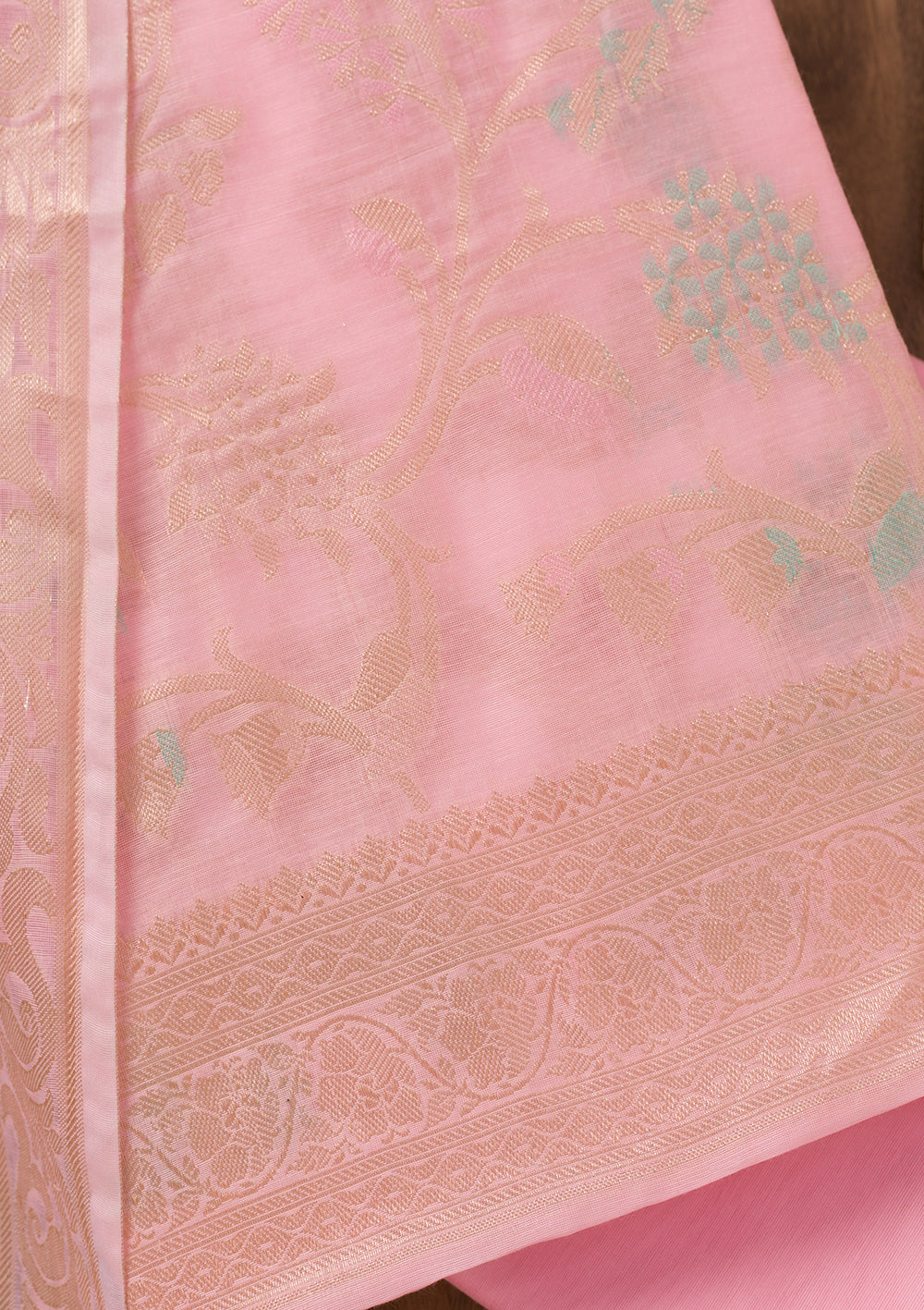 Pink Zariwork Banarasi Unstitched Salwar Suit