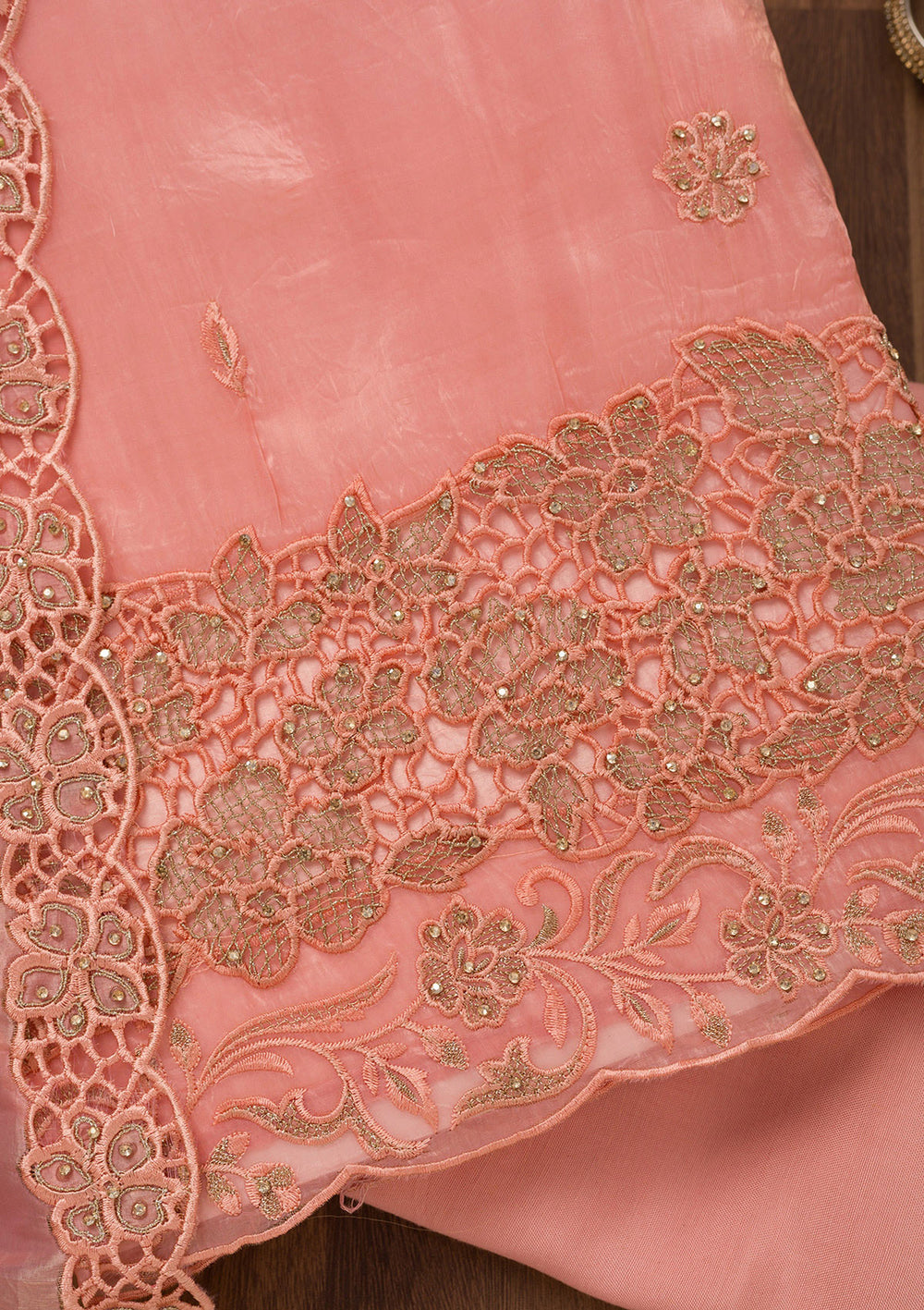 Pink Zariwork Semi Crepe Unstitched Salwar Suit