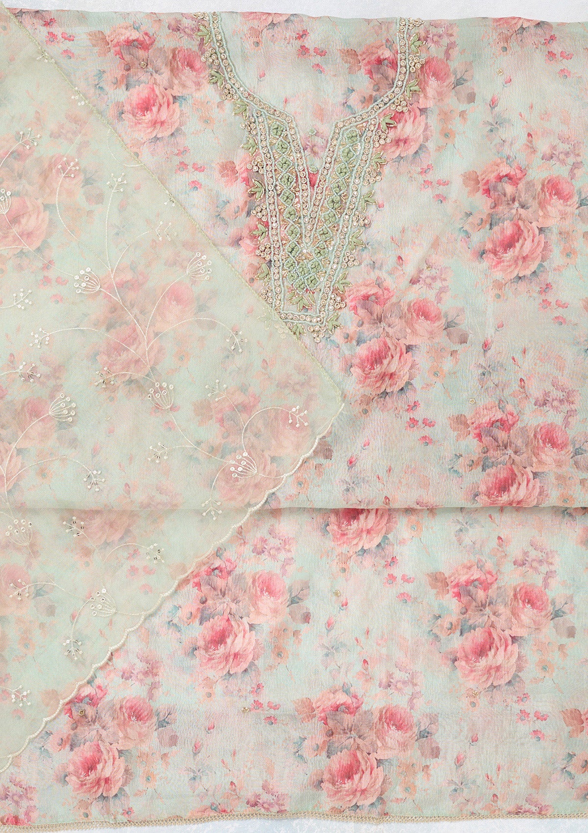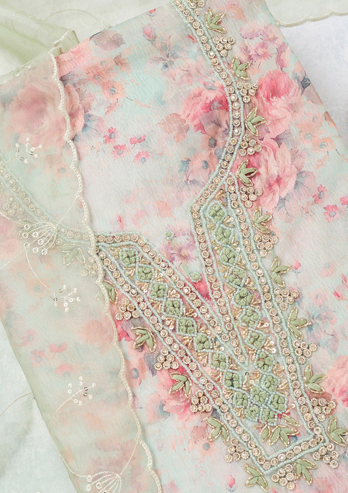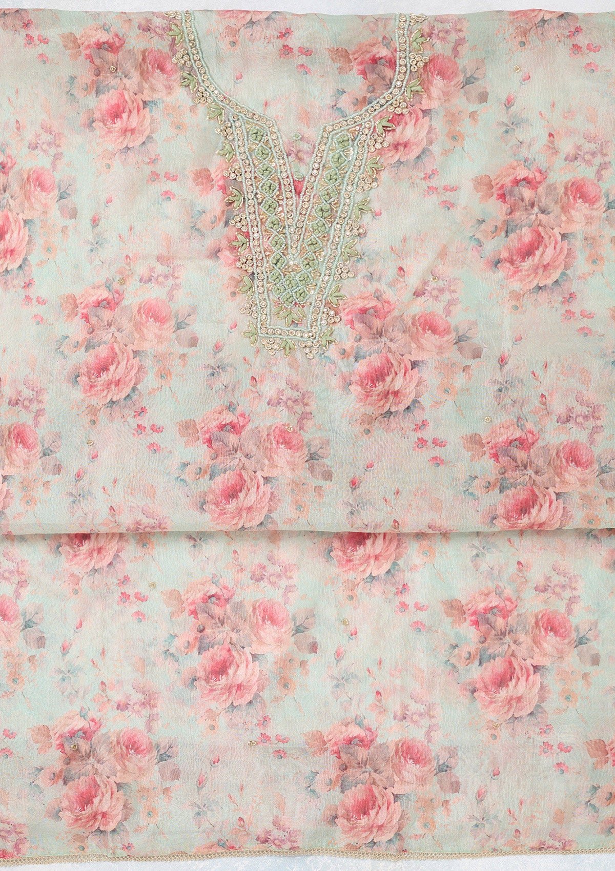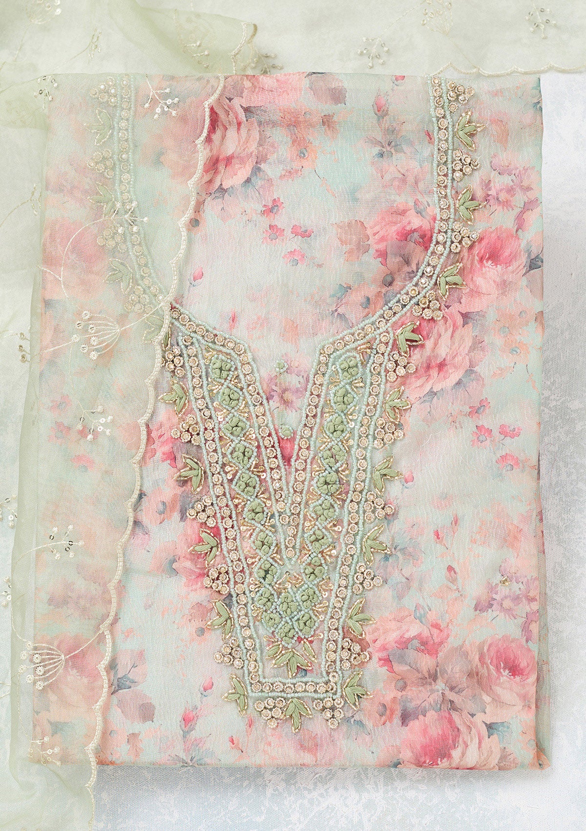 Pista Green Aariwork Tissue Unstitched Salwar Suit
