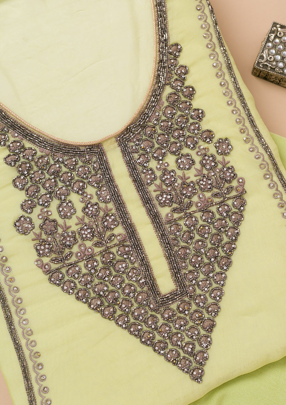 Pista Green Stonework Organza Unstitched Salwar Suit