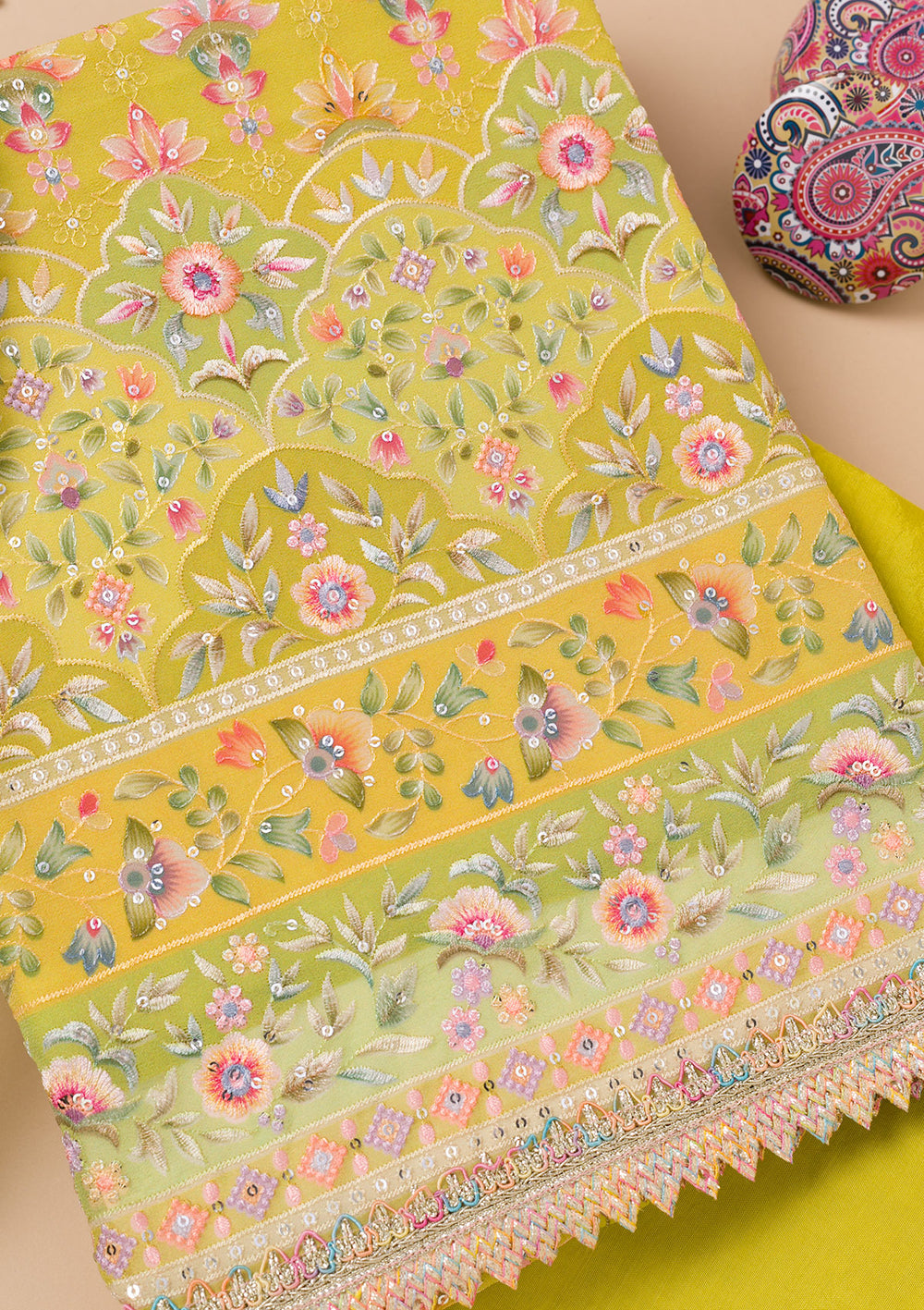 Pista Green Threadwork Georgette Unstitched Salwar Suit