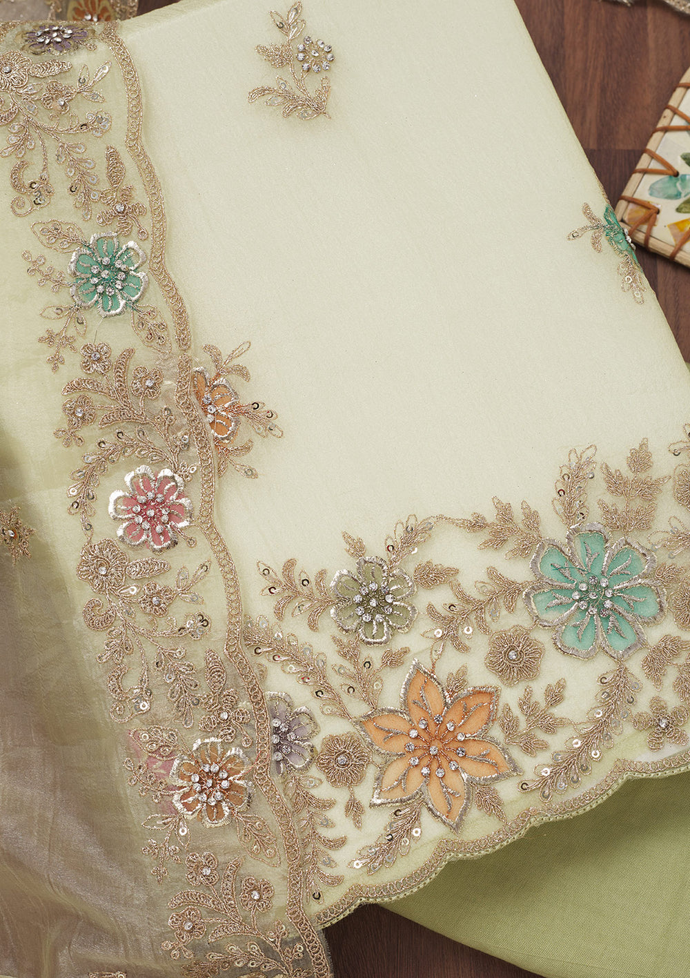 Pista Green Zariwork Semi Crepe Unstitched Salwar Suit