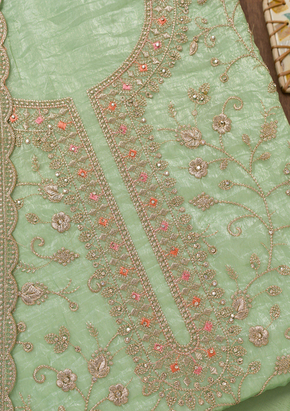 Pista Green Zariwork Tissue Unstitched Salwar Suit