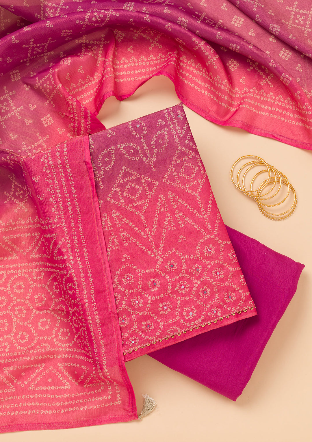 Purple Mirrorwork Tissue Unstitched Salwar Suit