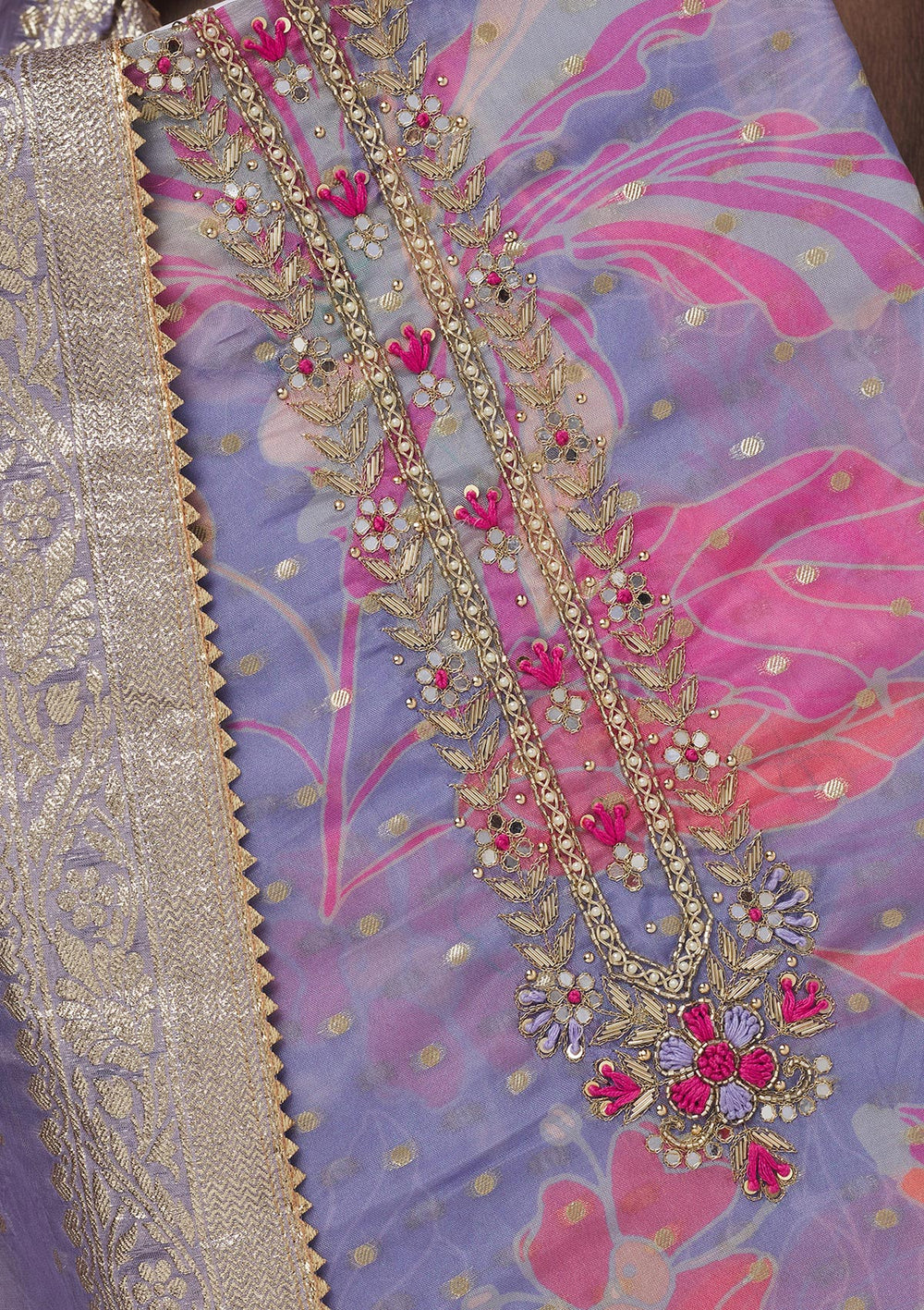 Dive into the playful elegance of Koskii’s lilac Georgette Salwar Suit, an expression of vibrant artistry meticulously adorned with lustrous threadwork. This unstitched ensemble promises a canvas for your personal style to shine, offering textures that whisper tales of refined charm. Perfect for crafting an outfit that mirrors your spirited and expressive persona, this piece awaits to sprinkle magic into your ethnic wardrobe.