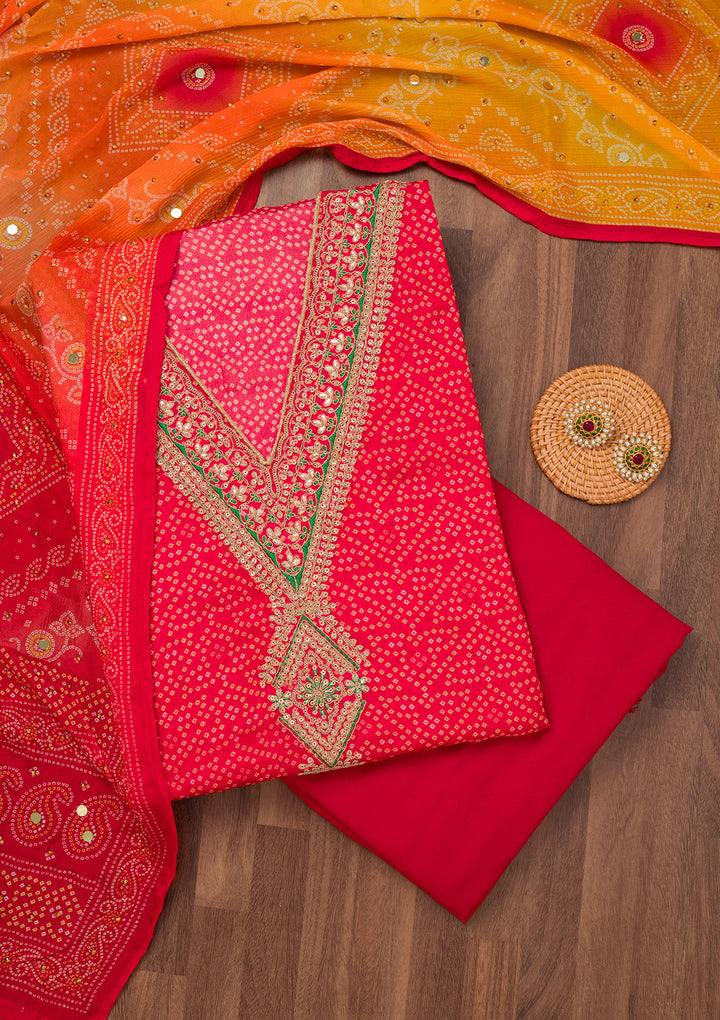 Rani Pink Printed Chiffon Unstitched Salwar Suit