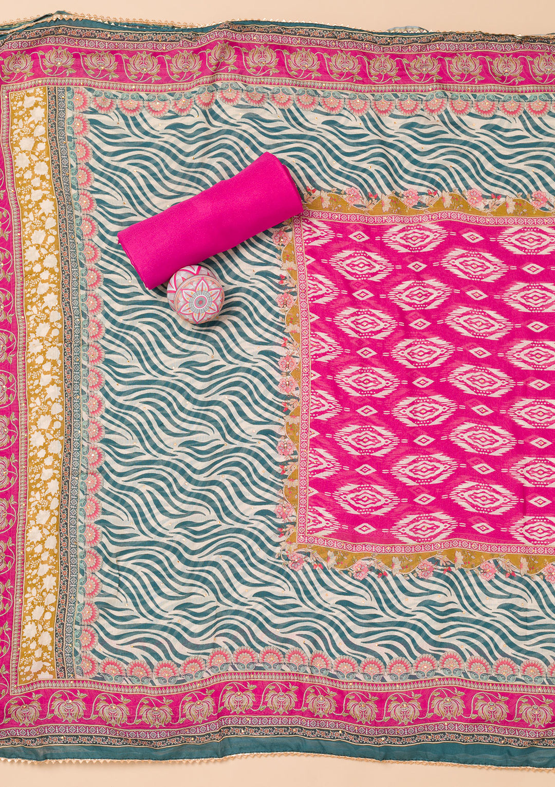 Rani Pink Printed Semi Crepe Unstitched Salwar Suit