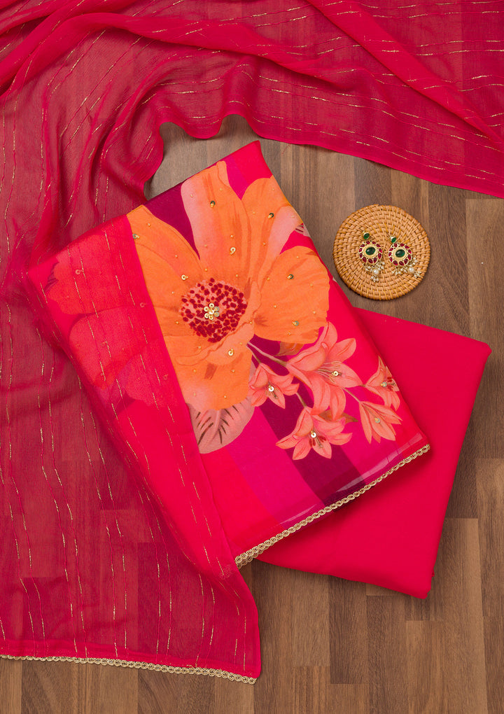 Rani Pink Printed Tissue Unstitched Salwar Suit