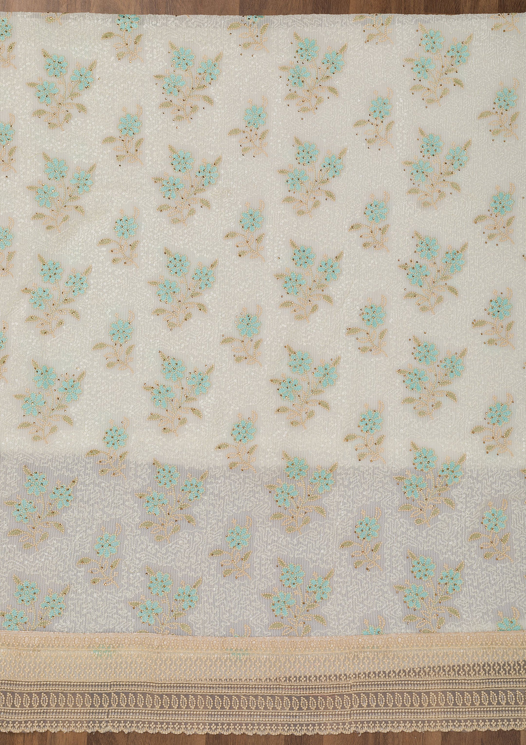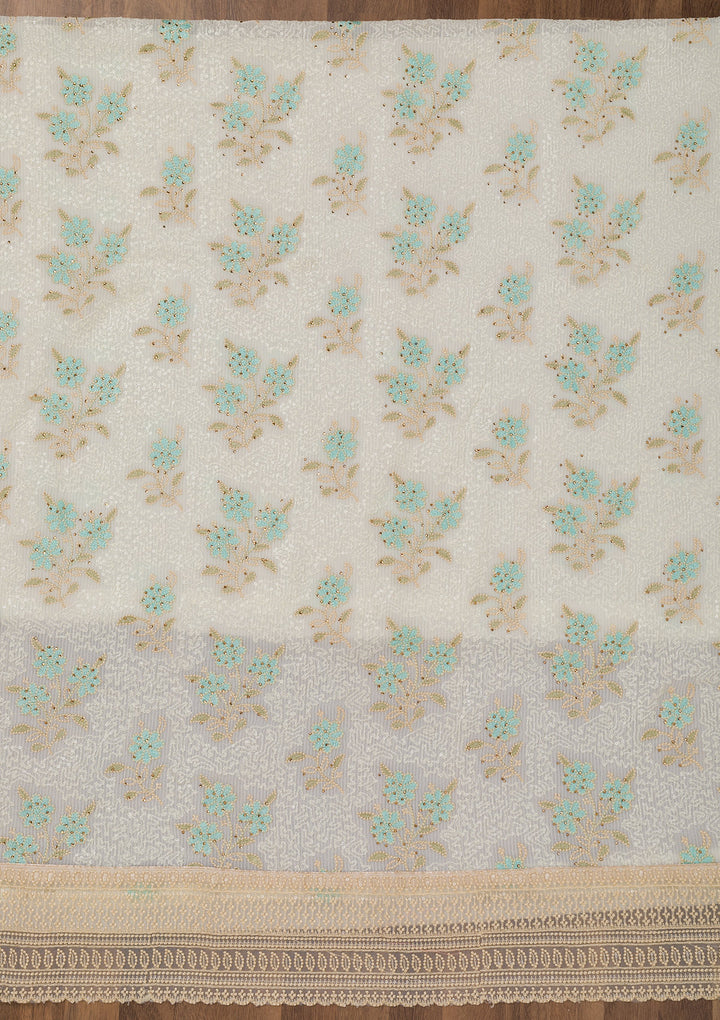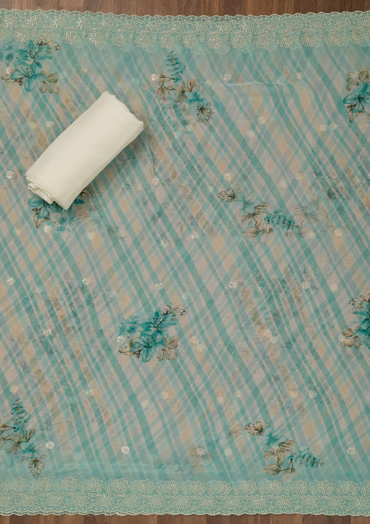 Sea Green Threadwork Georgette Unstitched Salwar Suit