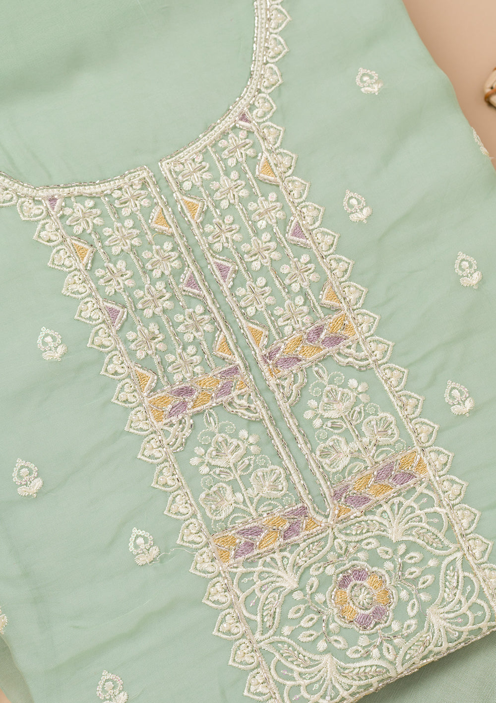 Sea Green Threadwork Organza Unstitched Salwar Suit