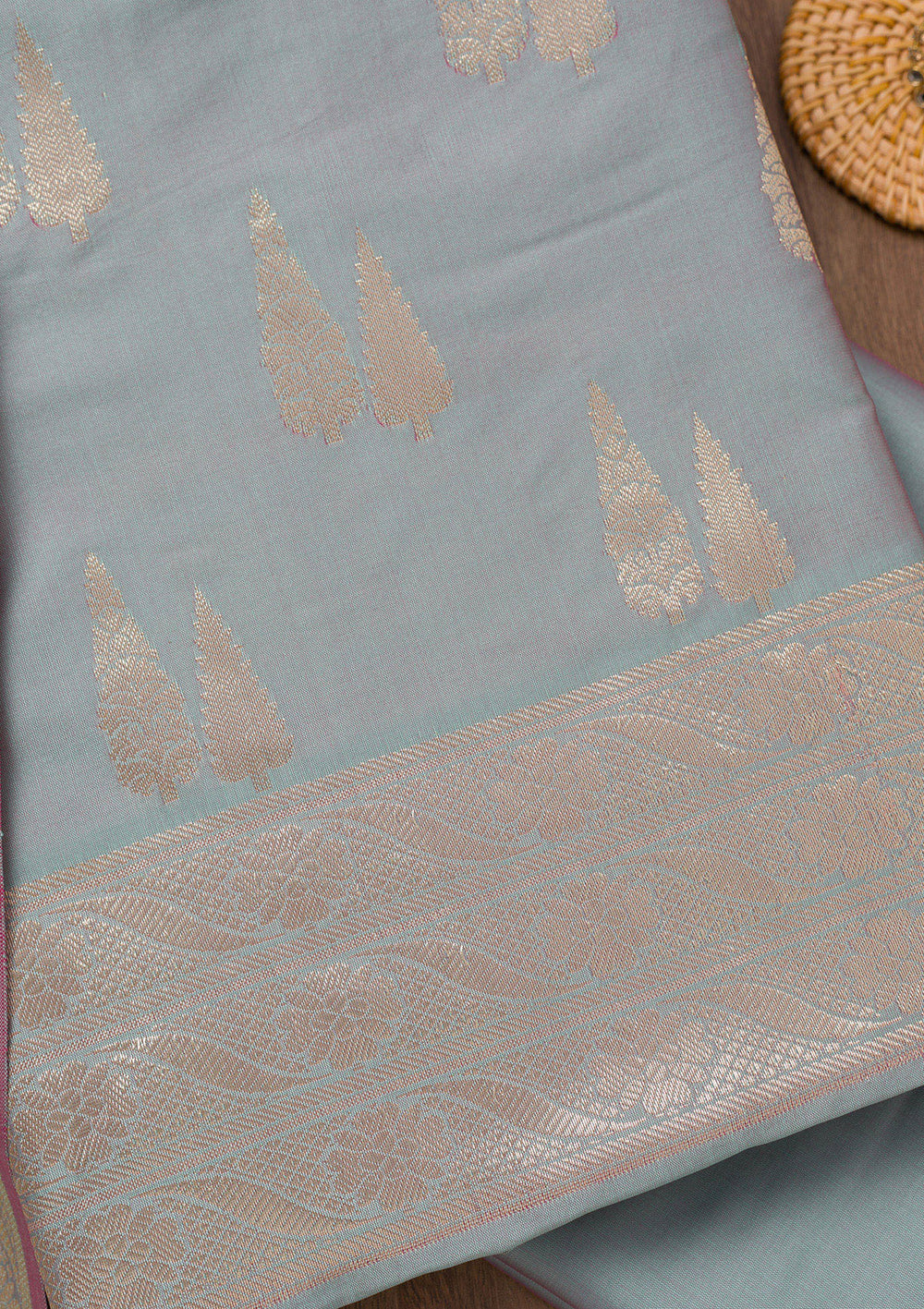 Sea Green Salwar Suit in Banarasi fabric The Salwar Suit is embellished with Zariwork embroidery Accompanied with a bottom and dupatta Comes with the Koskii promise of premium quality.