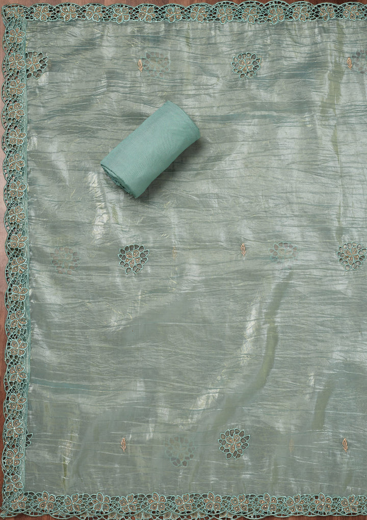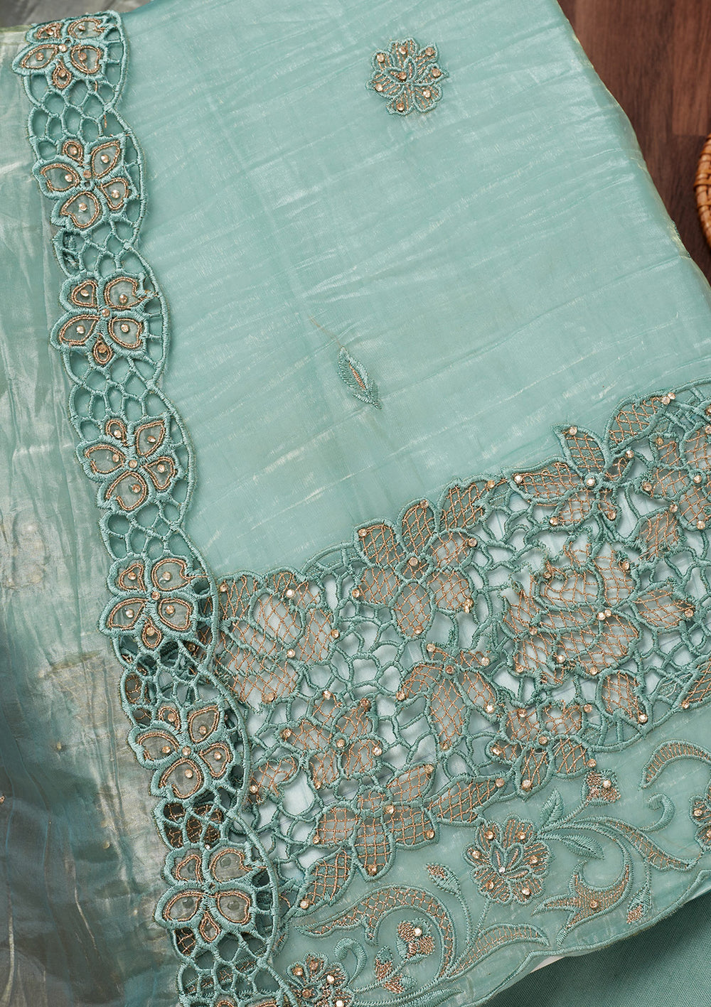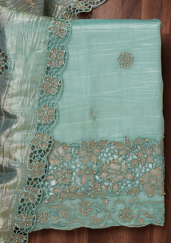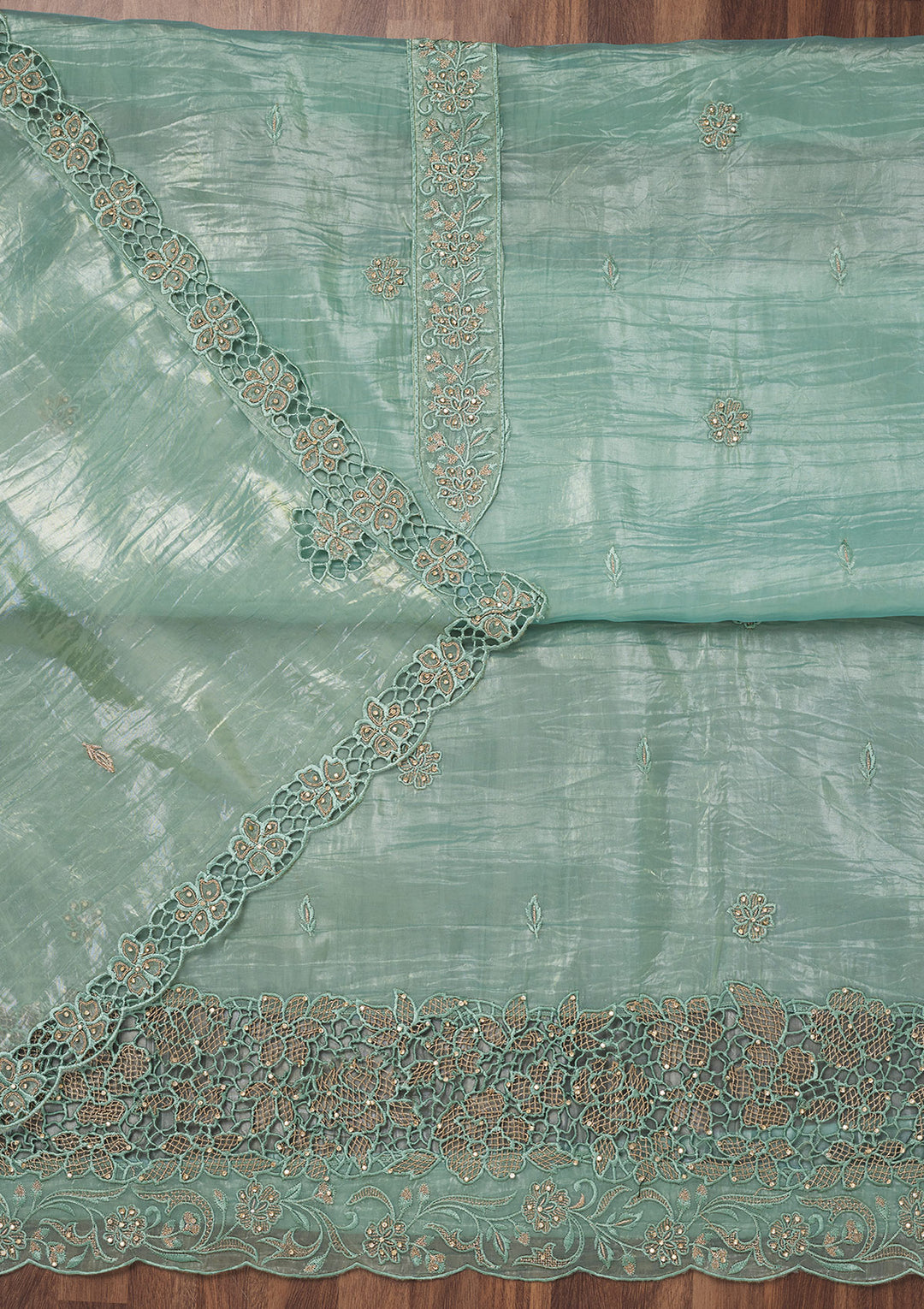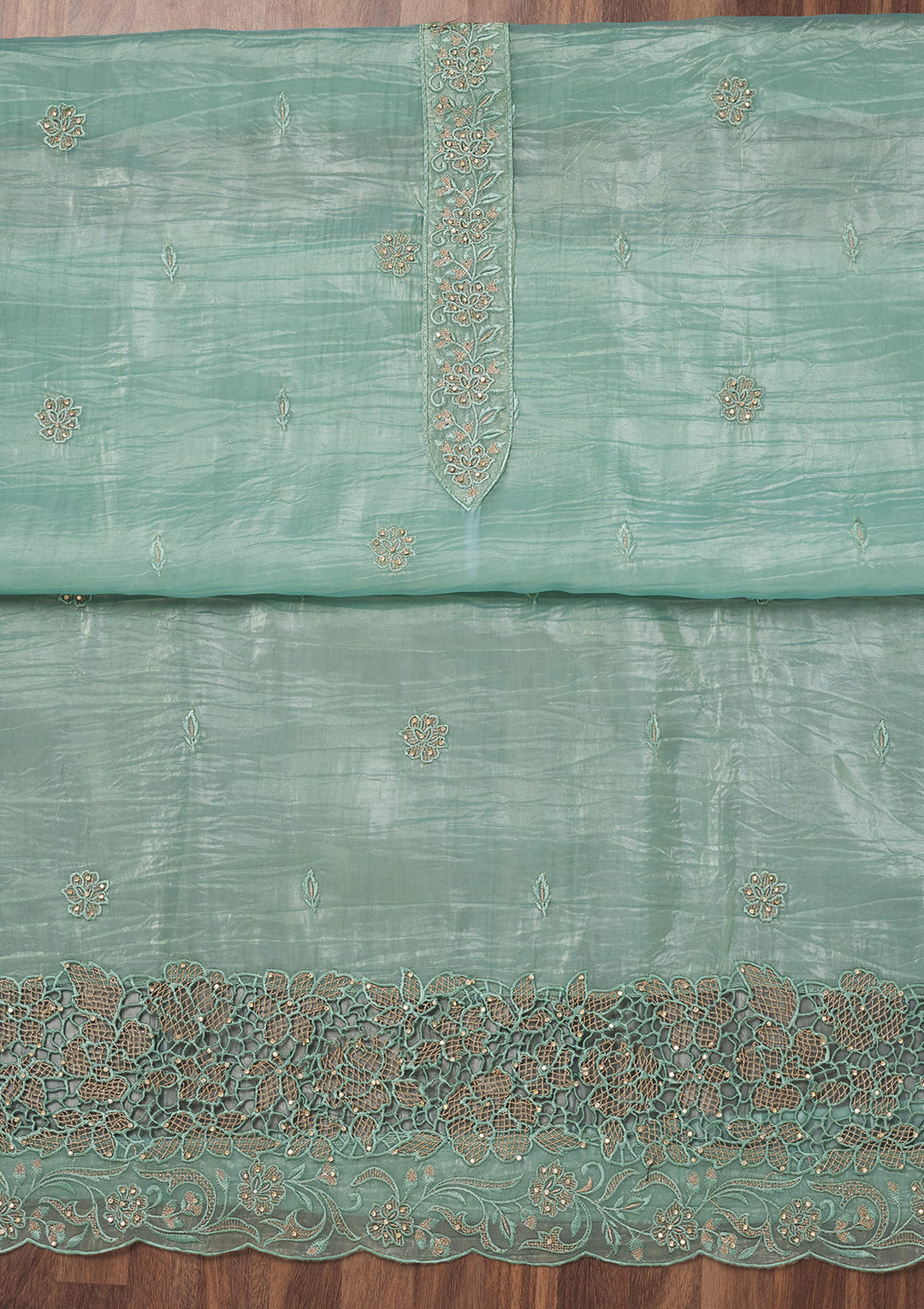 Sea Green Zariwork Semi Crepe Unstitched Salwar Suit