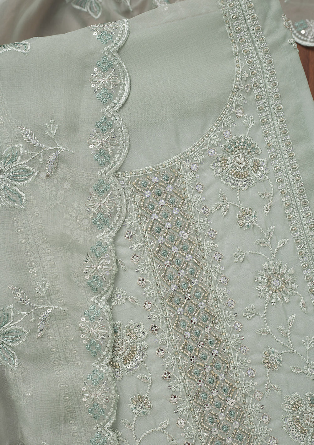 Sea Green Zariwork Semi Crepe Unstitched Salwar Suit