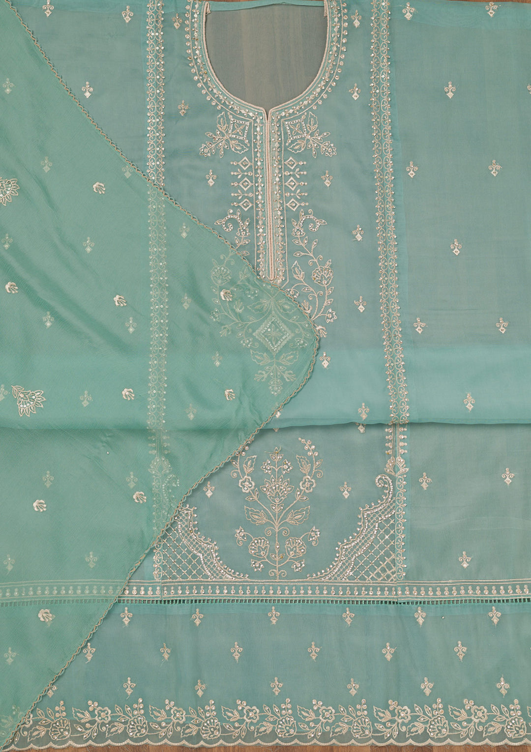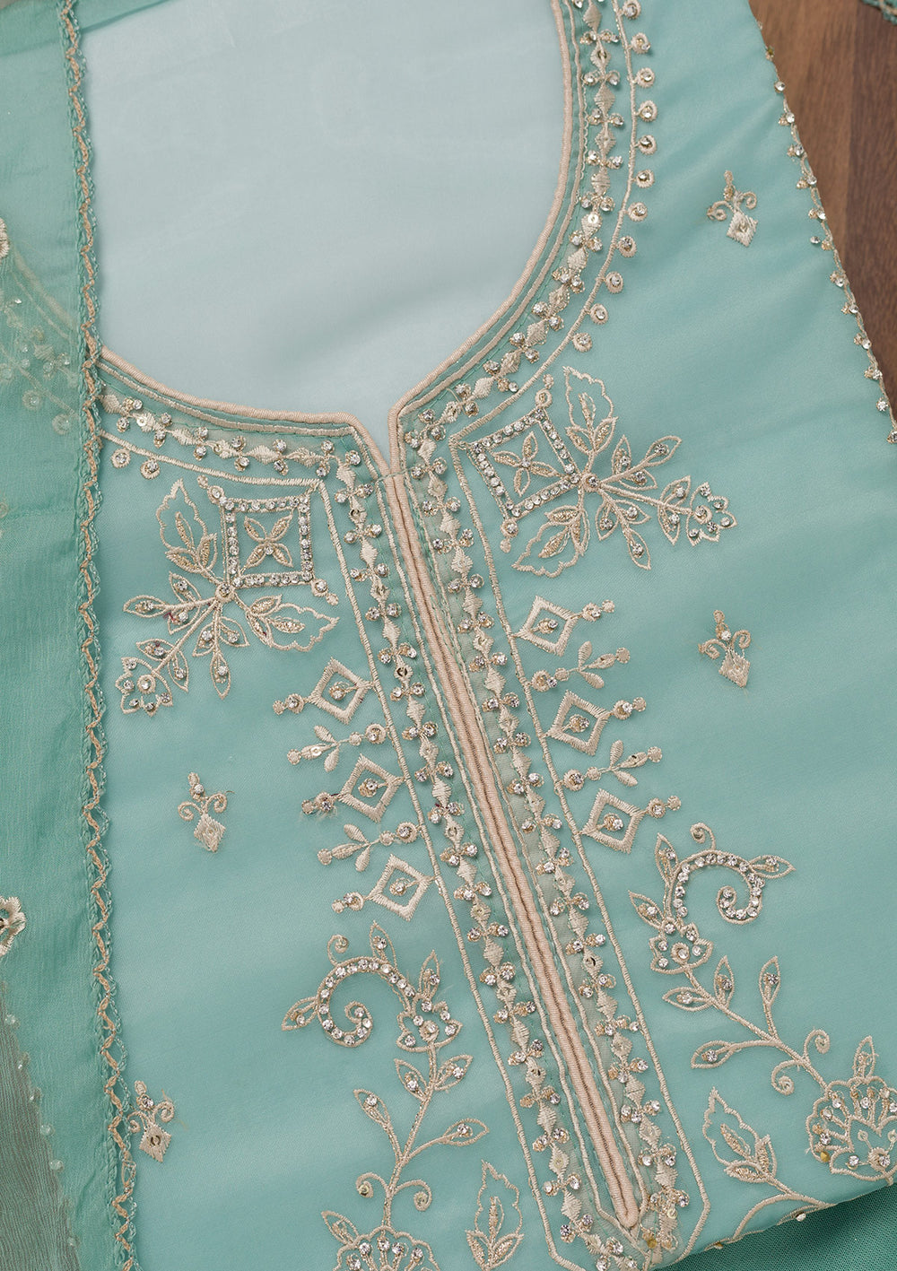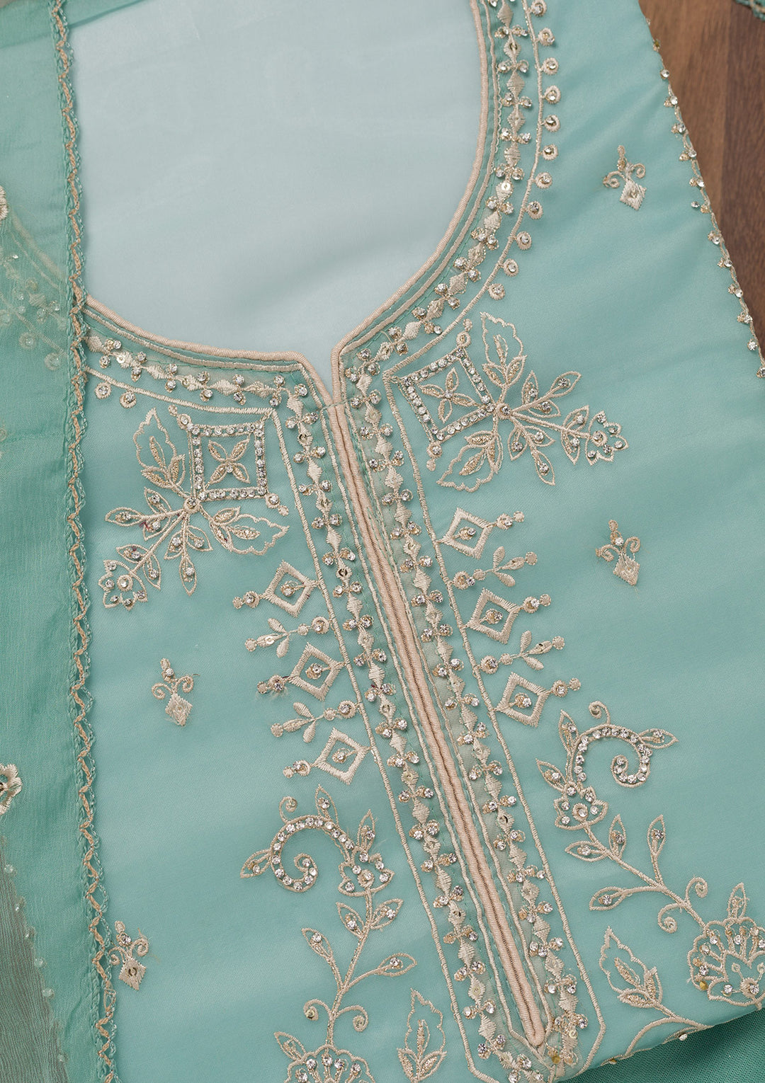 Sea Green Zariwork Tissue Unstitched Salwar Suit