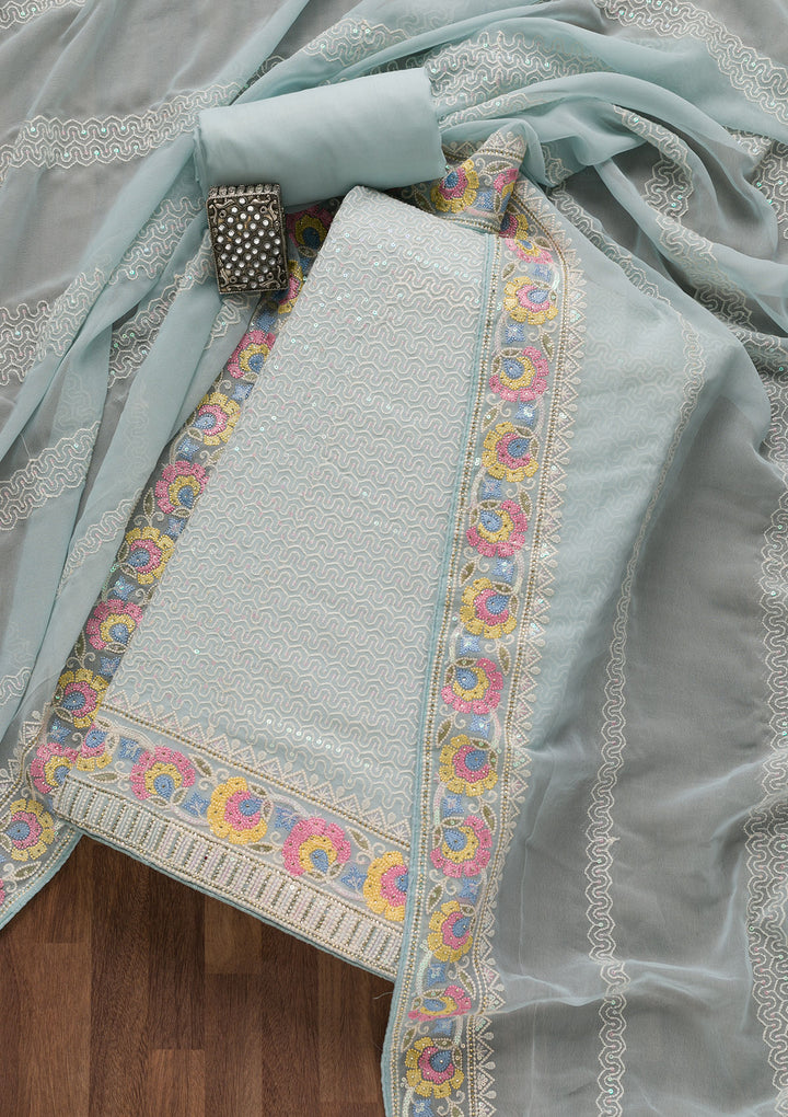 Sky Blue Threadwork Georgette Unstitched Salwar Suit