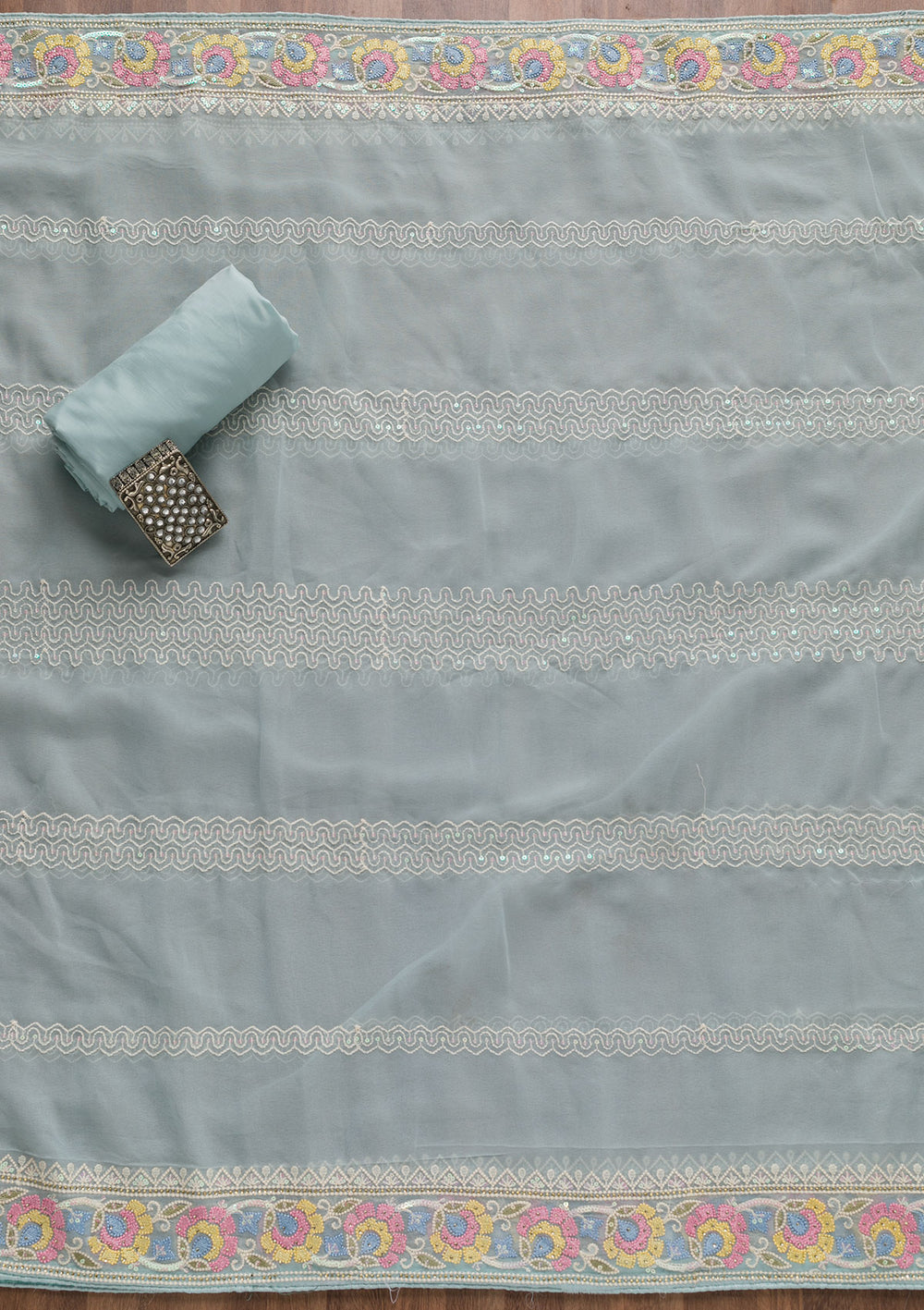 Sky Blue Salwar Suit in Georgette fabric. The Salwar Suit is embellished with Threadwork embroidery. Accompanied with a bottom and dupatta. Comes with the Koskii promise of premium quality.